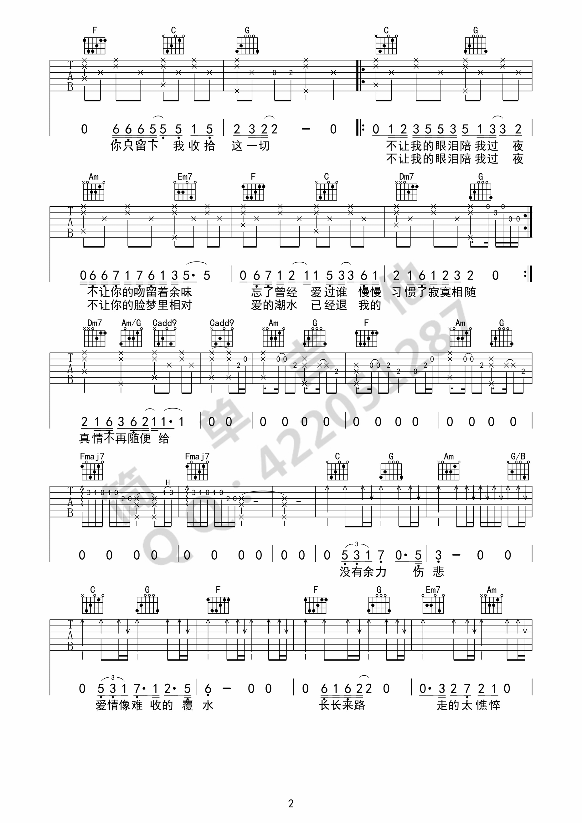 当前位置:琴谱网>吉他弹唱>不让我的眼泪陪我过夜