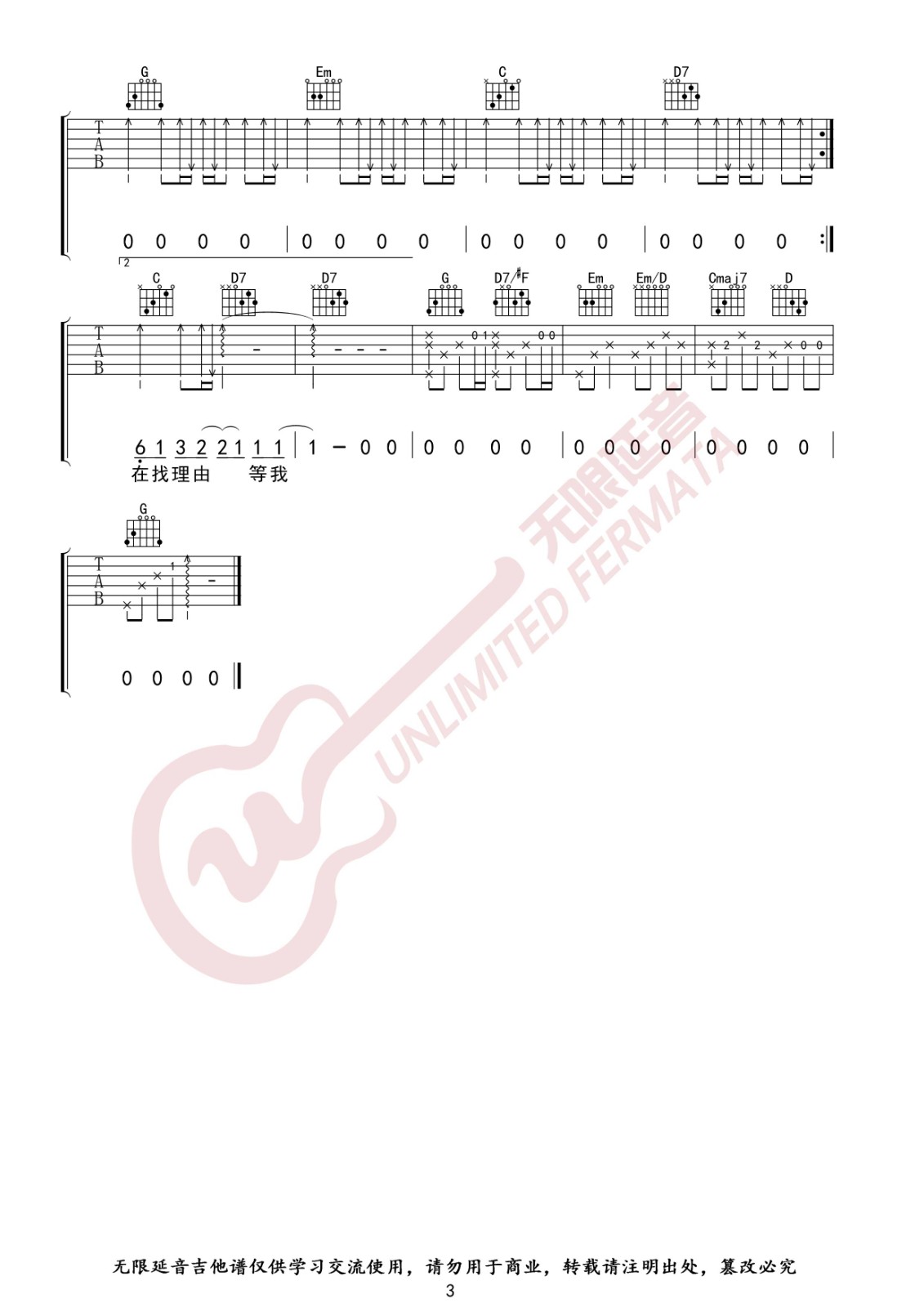 吉他弹唱G调来源:无限延音88 浏览2024-01-22 13:23发布图谱共3页