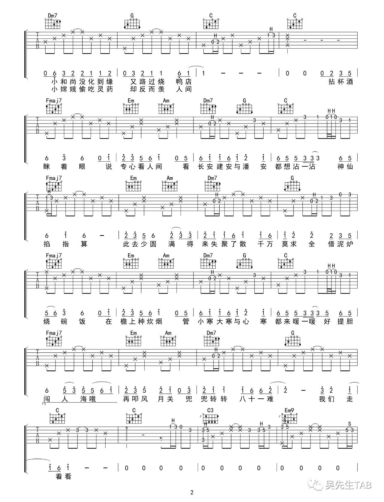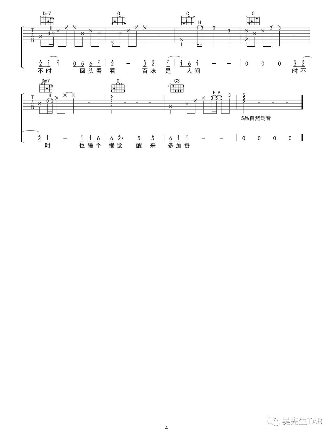 曲谱介绍: 黄诗扶《人间不值得》吉他弹唱谱,采用C调指法编配,吴先生编配出品,共有4张高清图谱。