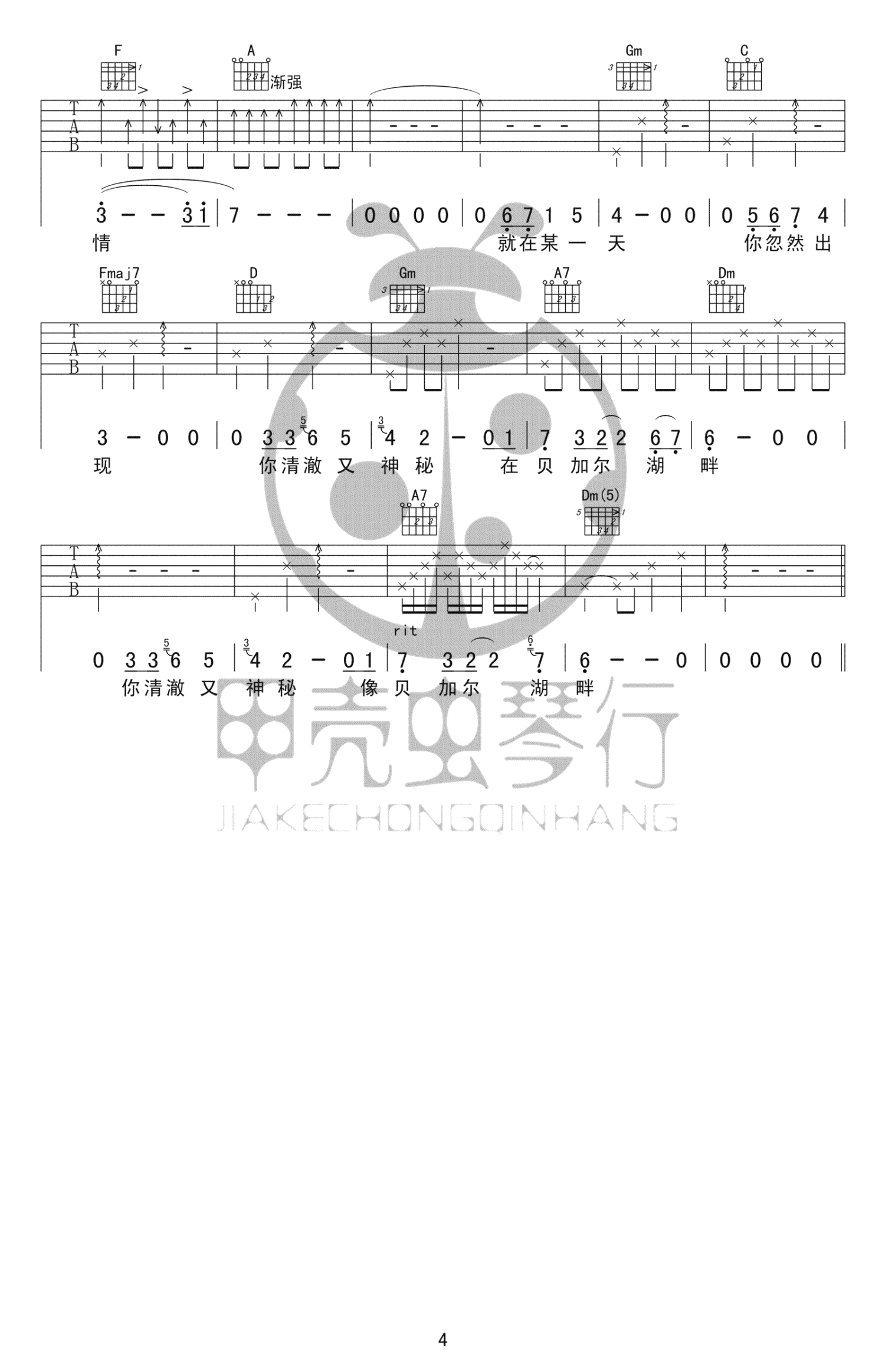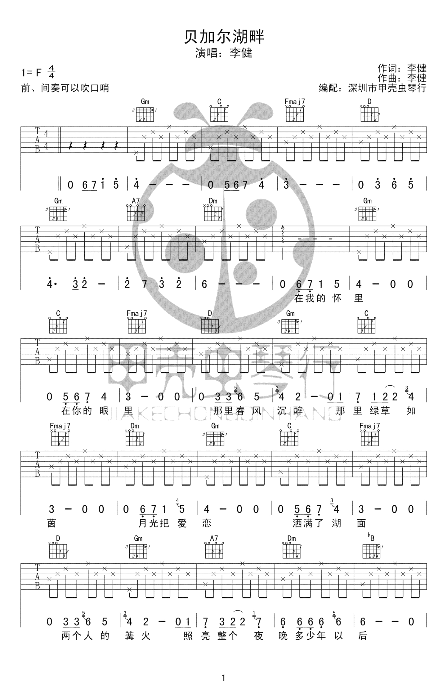 贝加尔湖畔吉他谱 - 李健 - 吉他弹唱谱