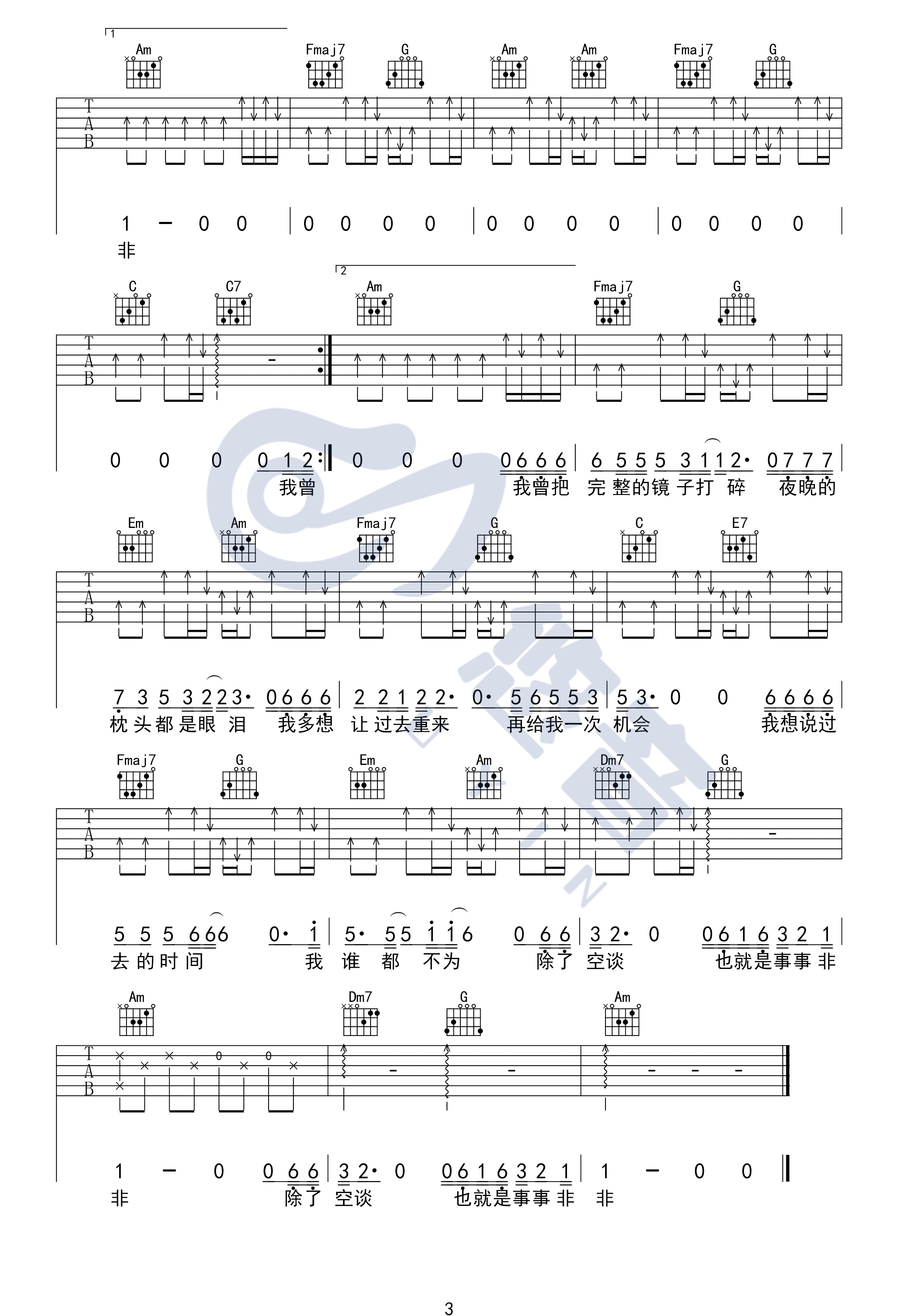 曲谱介绍: 隔壁老樊《我曾》吉他弹唱谱,采用C调指法编配,悠音吉他编配出品,共有3张高清图谱。
