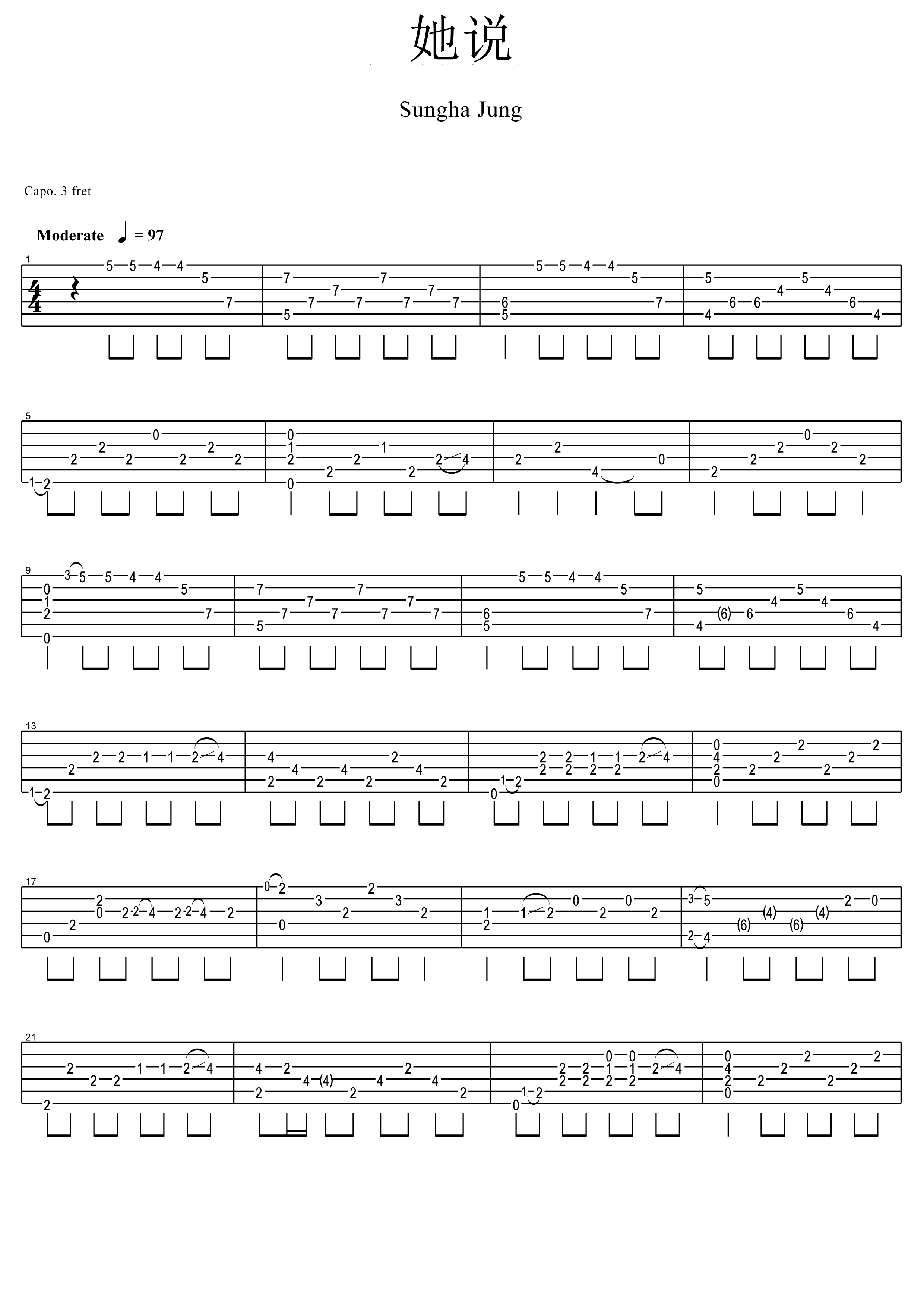 曲谱介绍: 林俊杰《她说》吉他独奏谱,Yuji812编配出品,共有4张高清图谱。