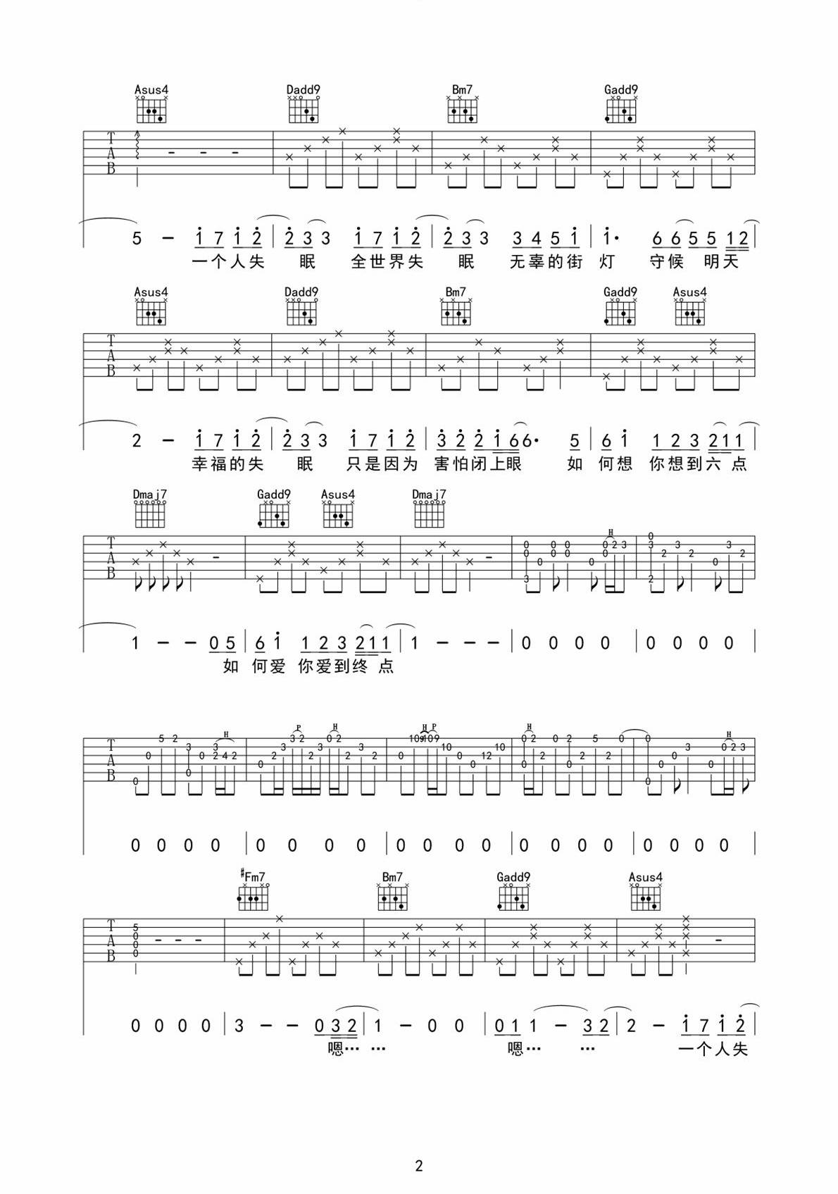 当前位置:琴谱网>吉他弹唱>全世界失眠