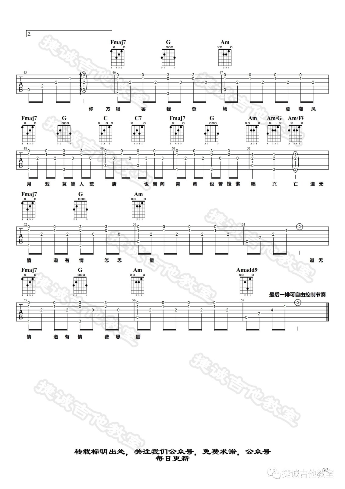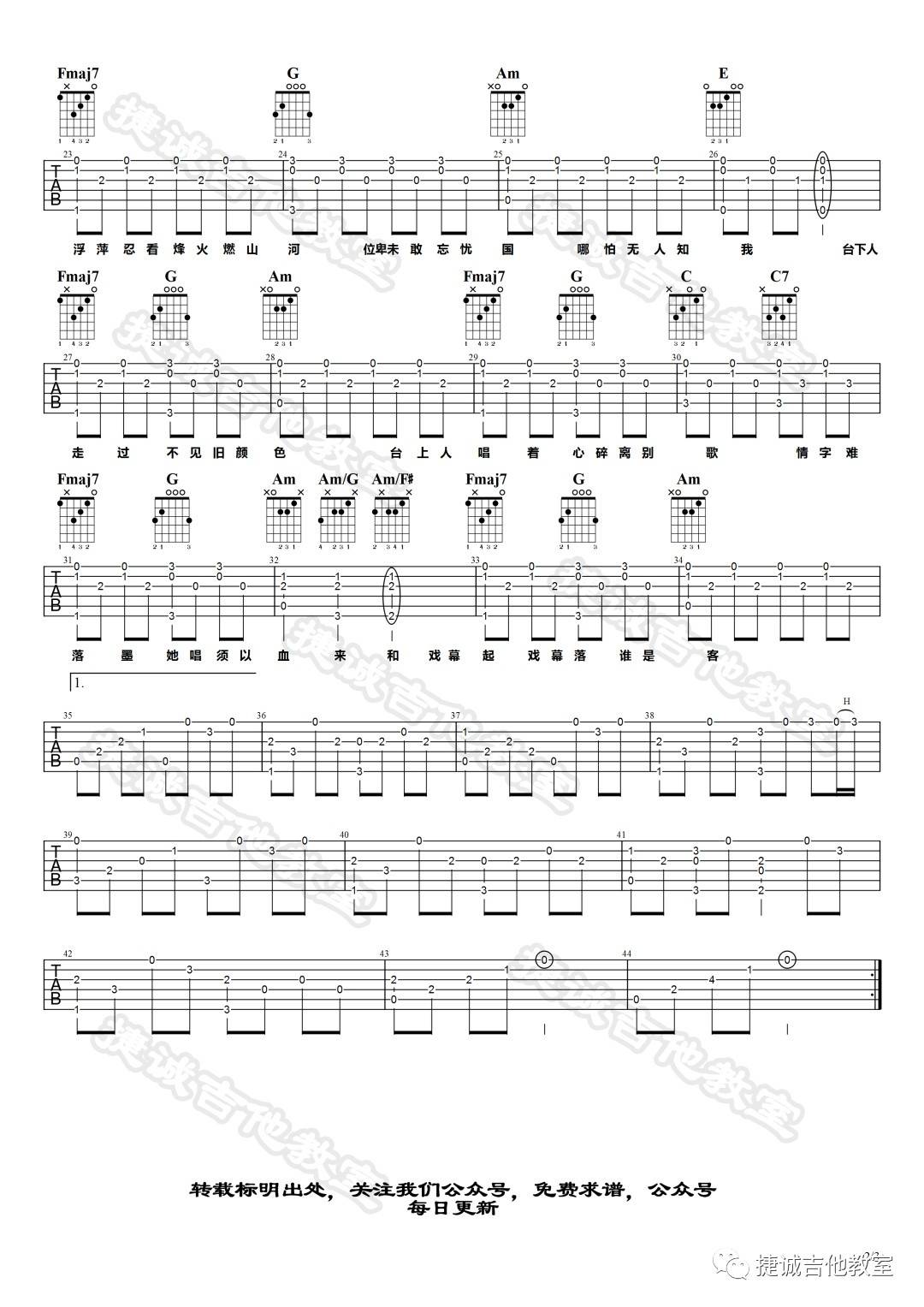 吉他弹唱C调来源:捷诚吉他教室112 浏览2024-01-22 14:12发布图谱共3页