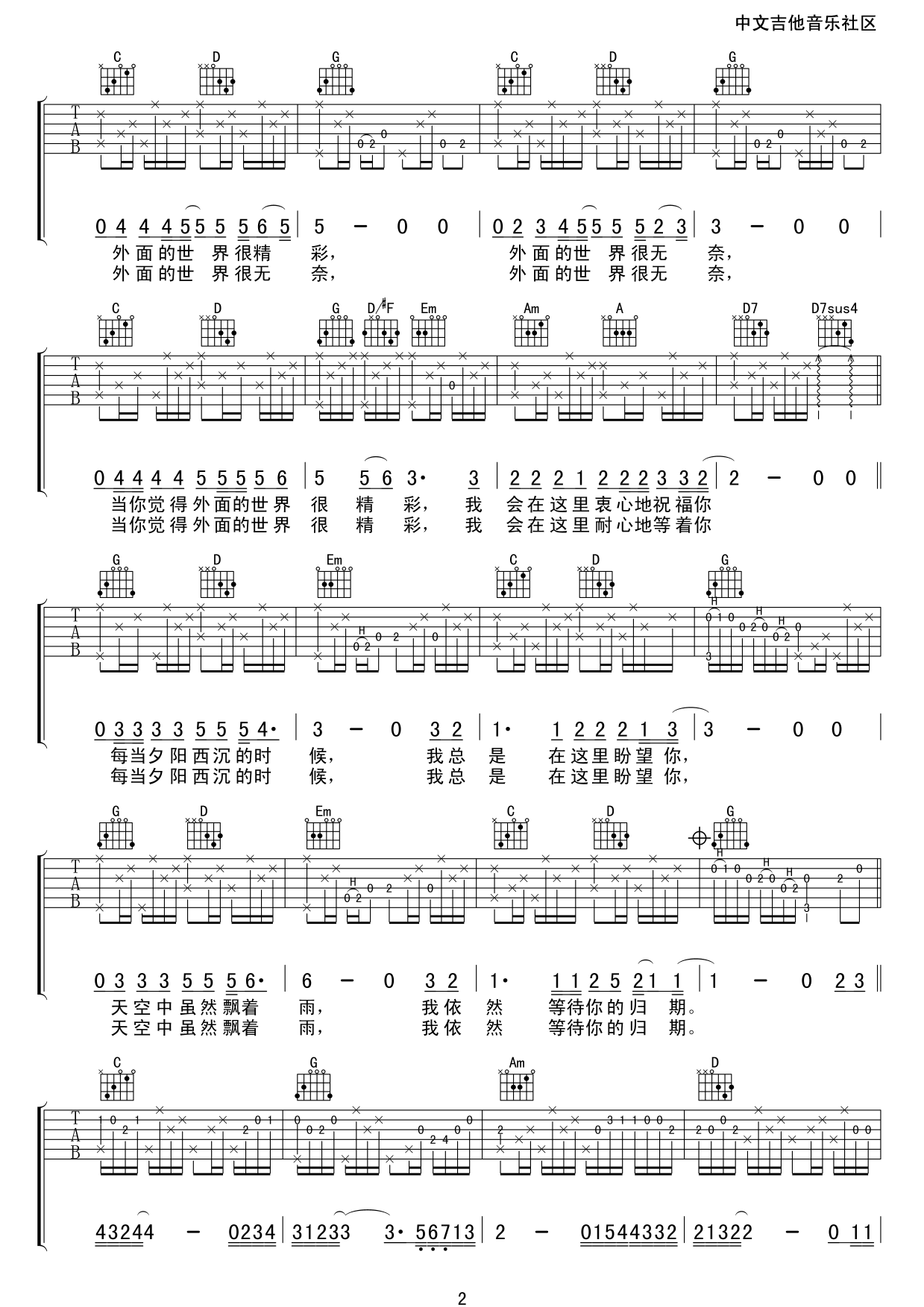 外面的世界吉他谱 - 齐秦 - G调吉他弹唱谱