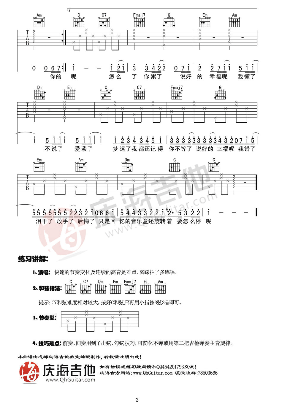 吉他弹唱C调来源:庆海吉他教室169 浏览2024-01-22 14:29发布图谱共3页