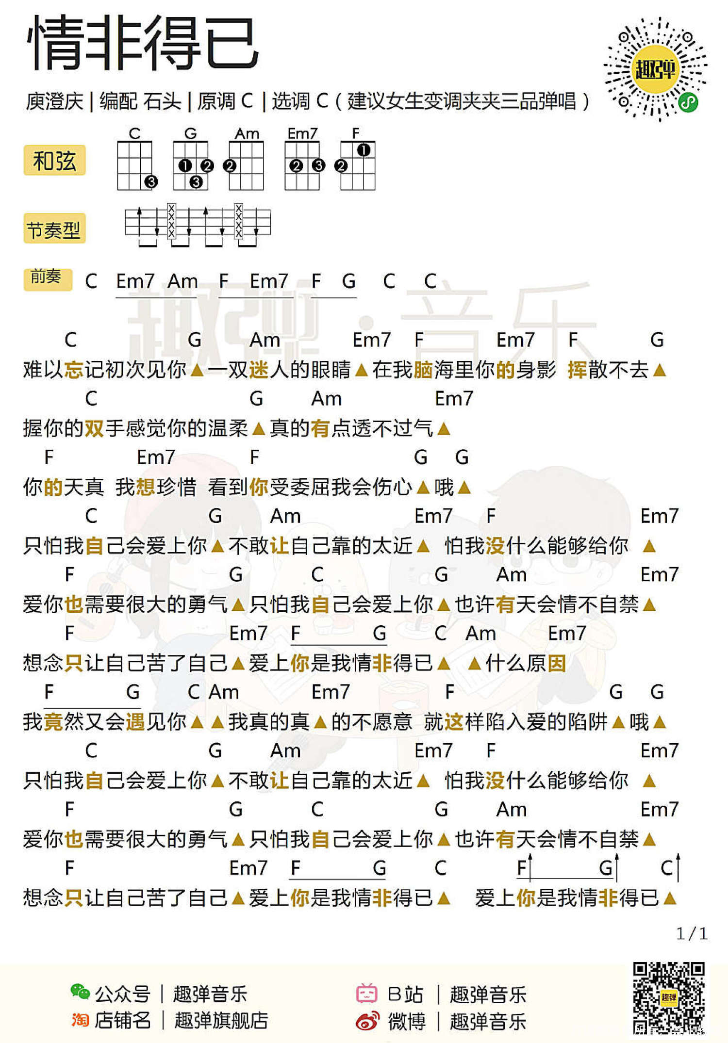 情非得已尤克里里谱 - 庚澄庆