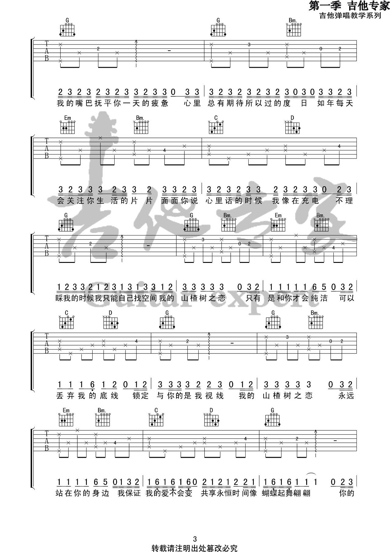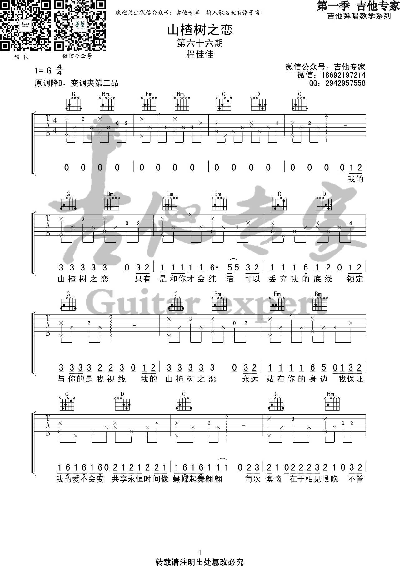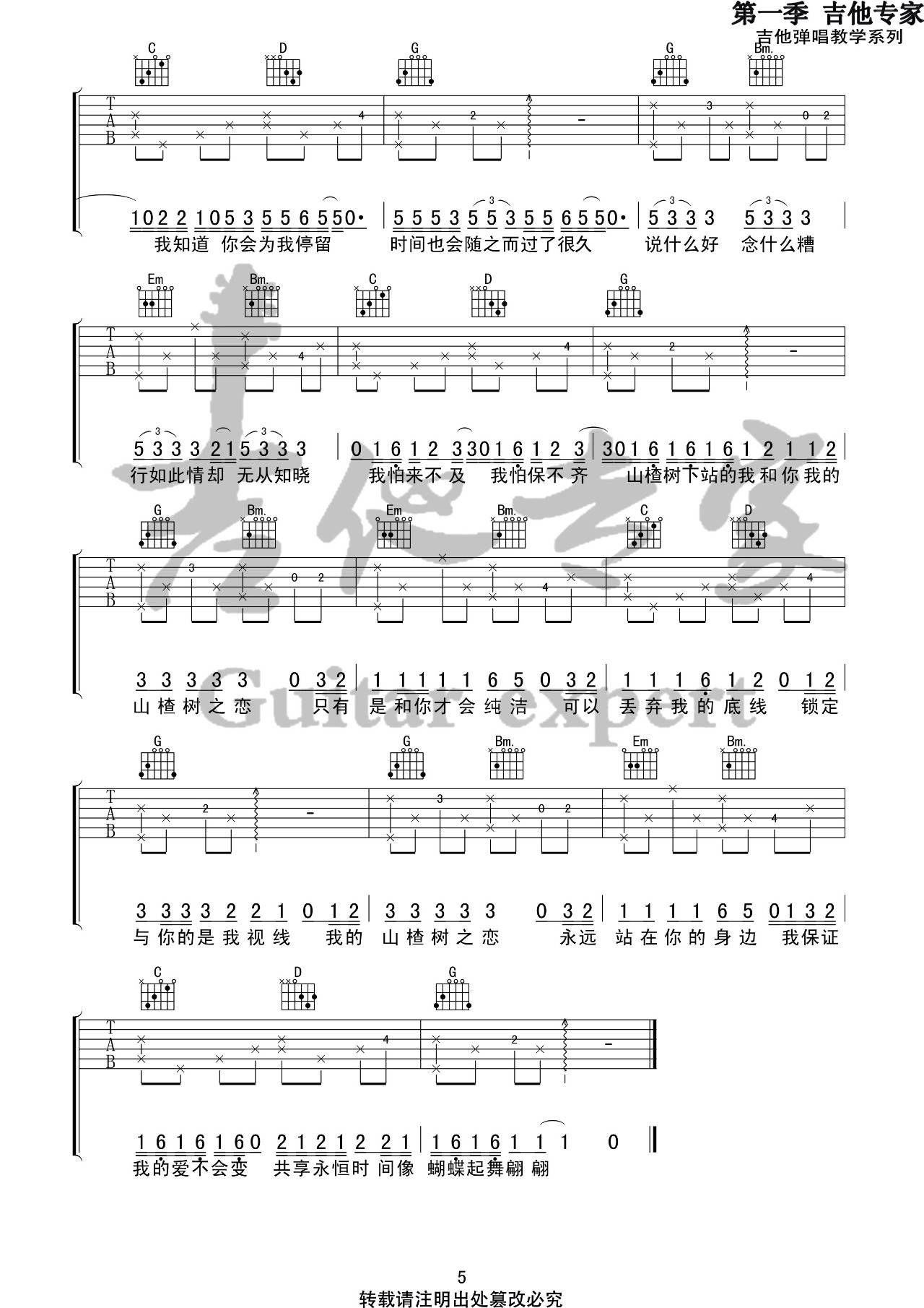 山楂树之恋吉他谱 - 大能人 - G调吉他弹唱谱