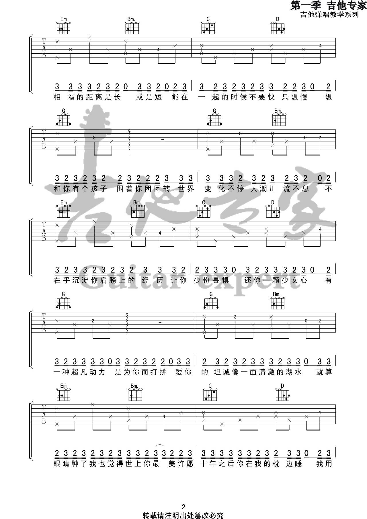 曲谱介绍: 大能人《山楂树之恋》吉他弹唱谱,采用G调指法编配,音艺吉他编配出品,共有5张高清图谱。
