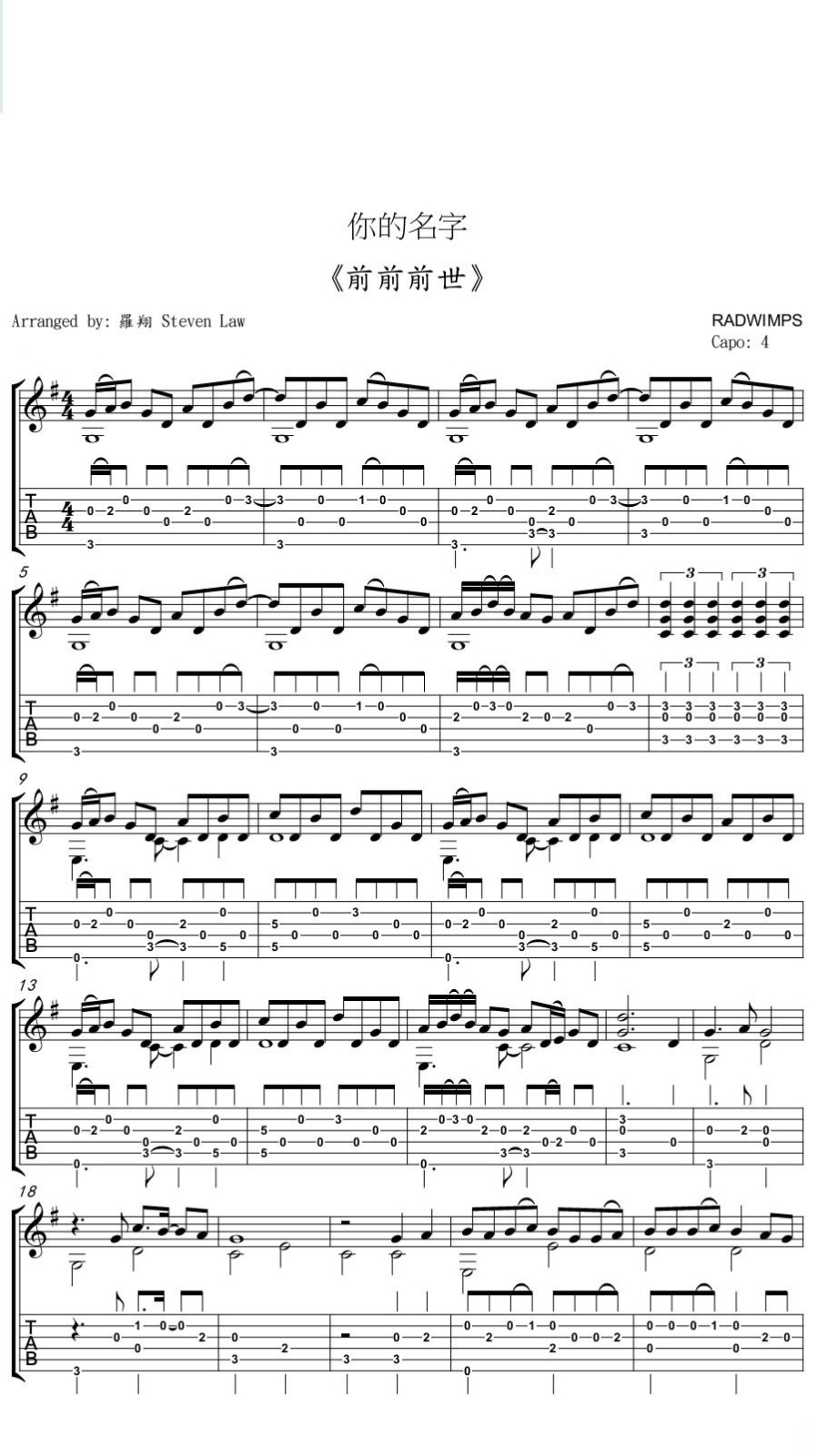 曲谱介绍: 附演示《前前世世》吉他独奏谱,共有4张高清图谱。