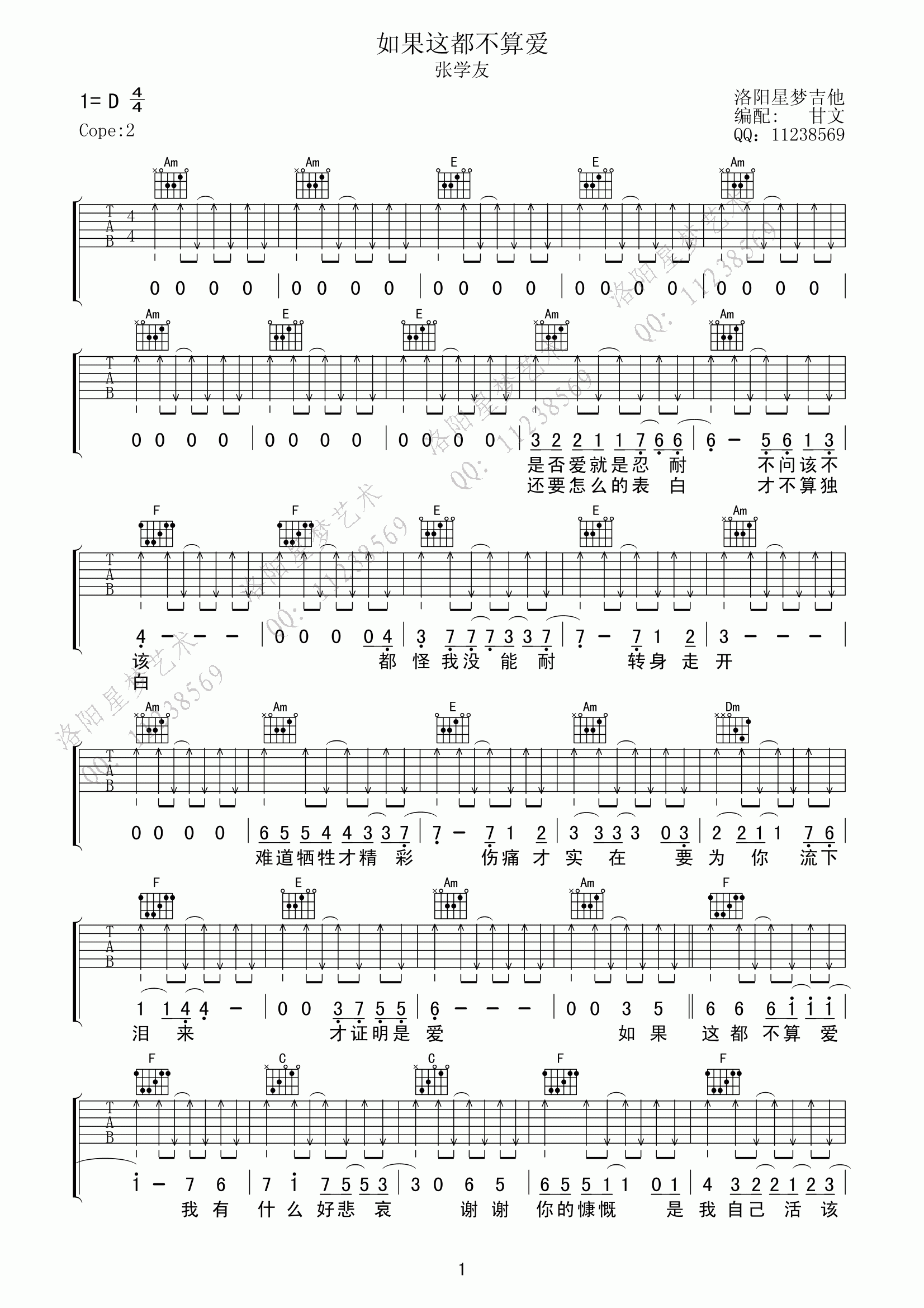 曲谱介绍: 张学友《如果这都不算爱》吉他弹唱谱,采用D调指法编配,星梦吉他编配出品,共有2张高清图谱,免翻页排版设计。