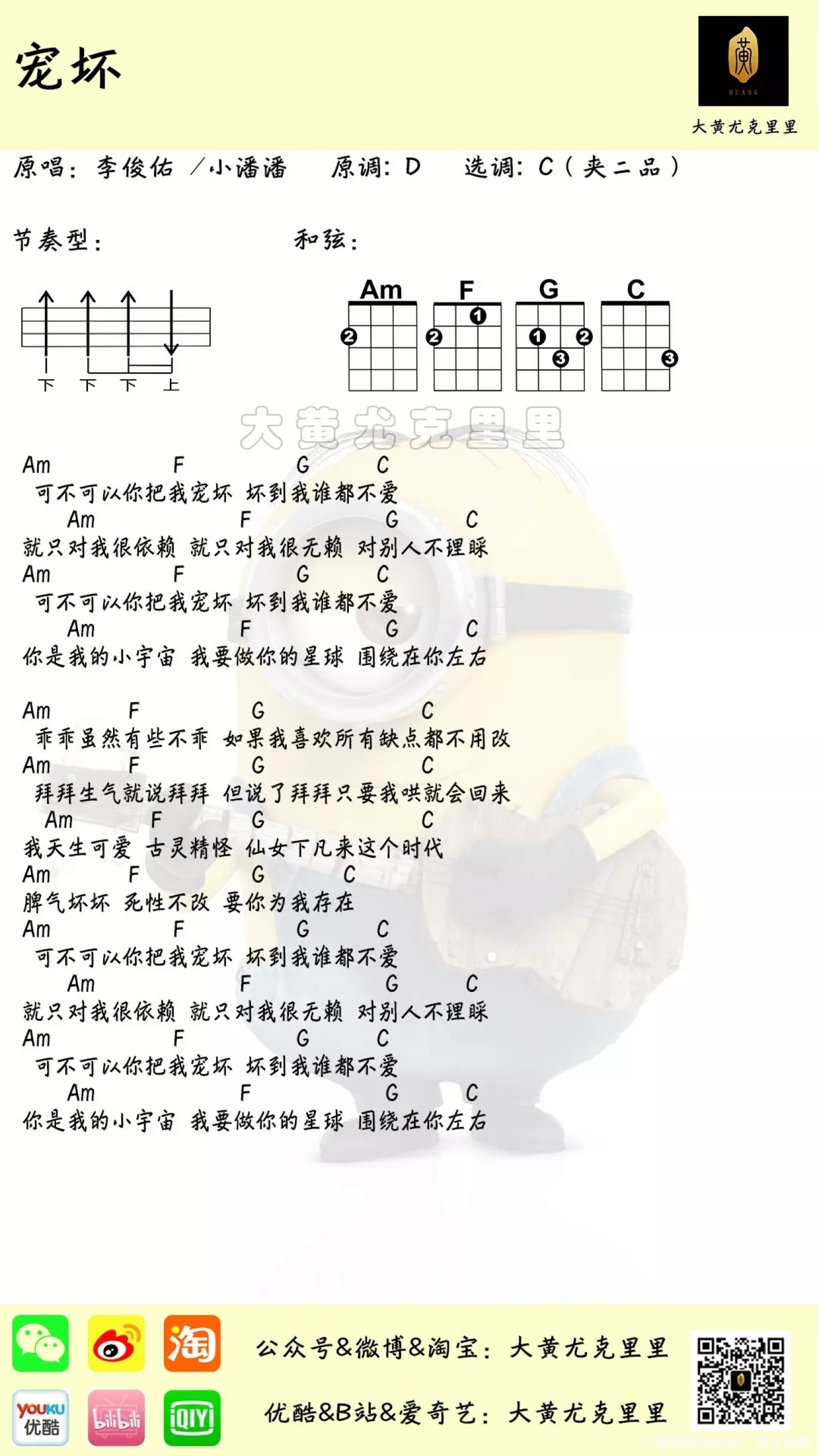 宠坏尤克里里谱 - 李俊佑 /小潘潘