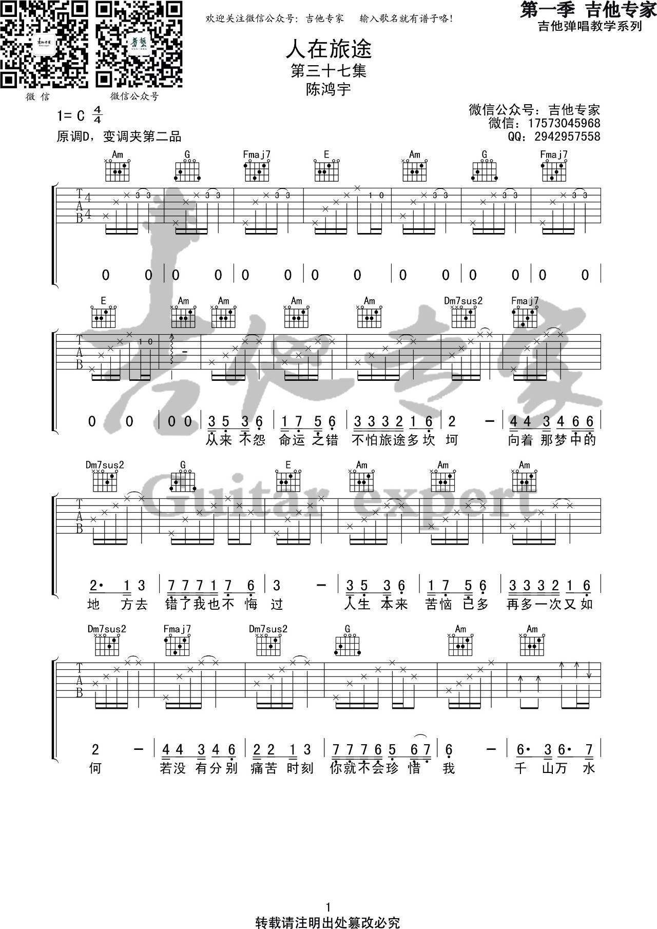 人在旅途吉他谱 - 陈鸿宇 - C调吉他弹唱谱