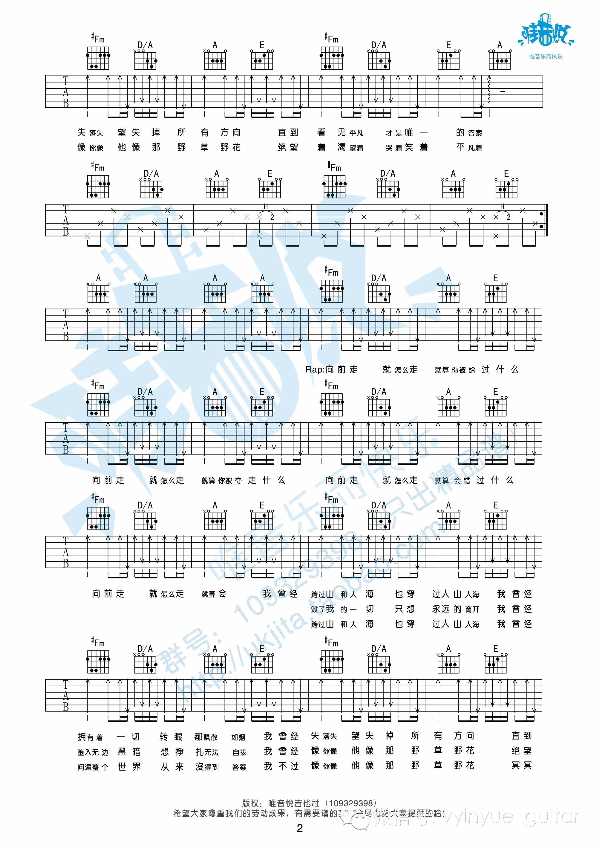 曲谱介绍: 朴树《平凡之路》吉他弹唱谱,采用A调指法编配原版,唯音悦编配出品,共有3张高清图谱。