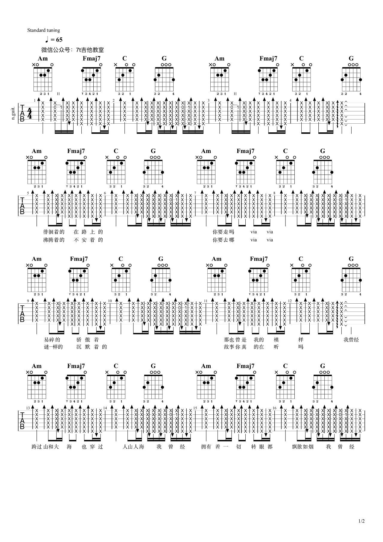 吉他弹唱C调来源:7T吉他教室218 浏览2024-01-22 15:47发布图谱共2页