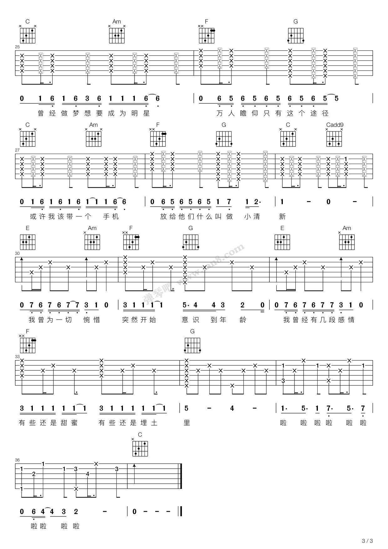 吉他弹唱C调来源:弹琴吧148 浏览2024-01-22 15:50发布图谱共3页