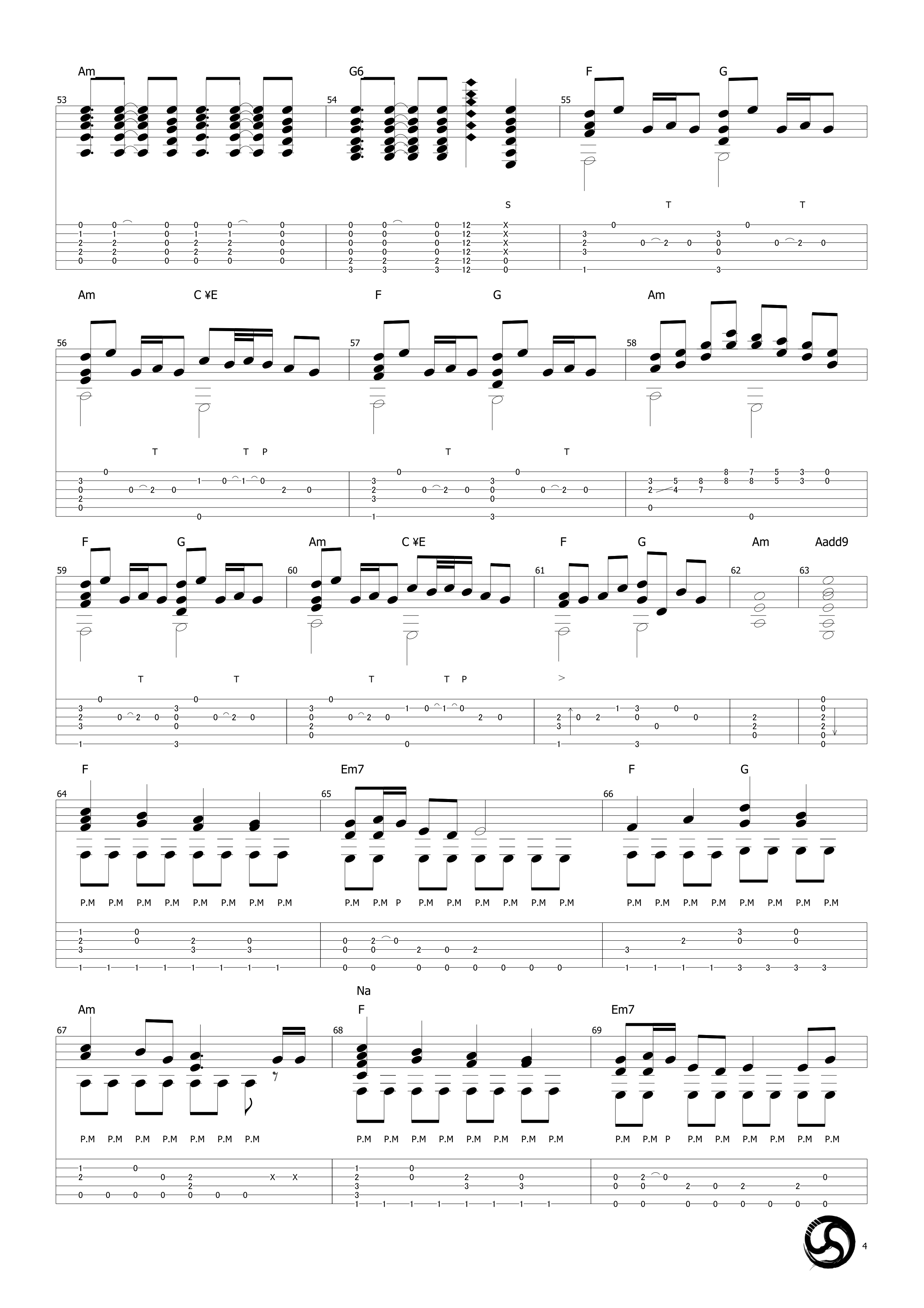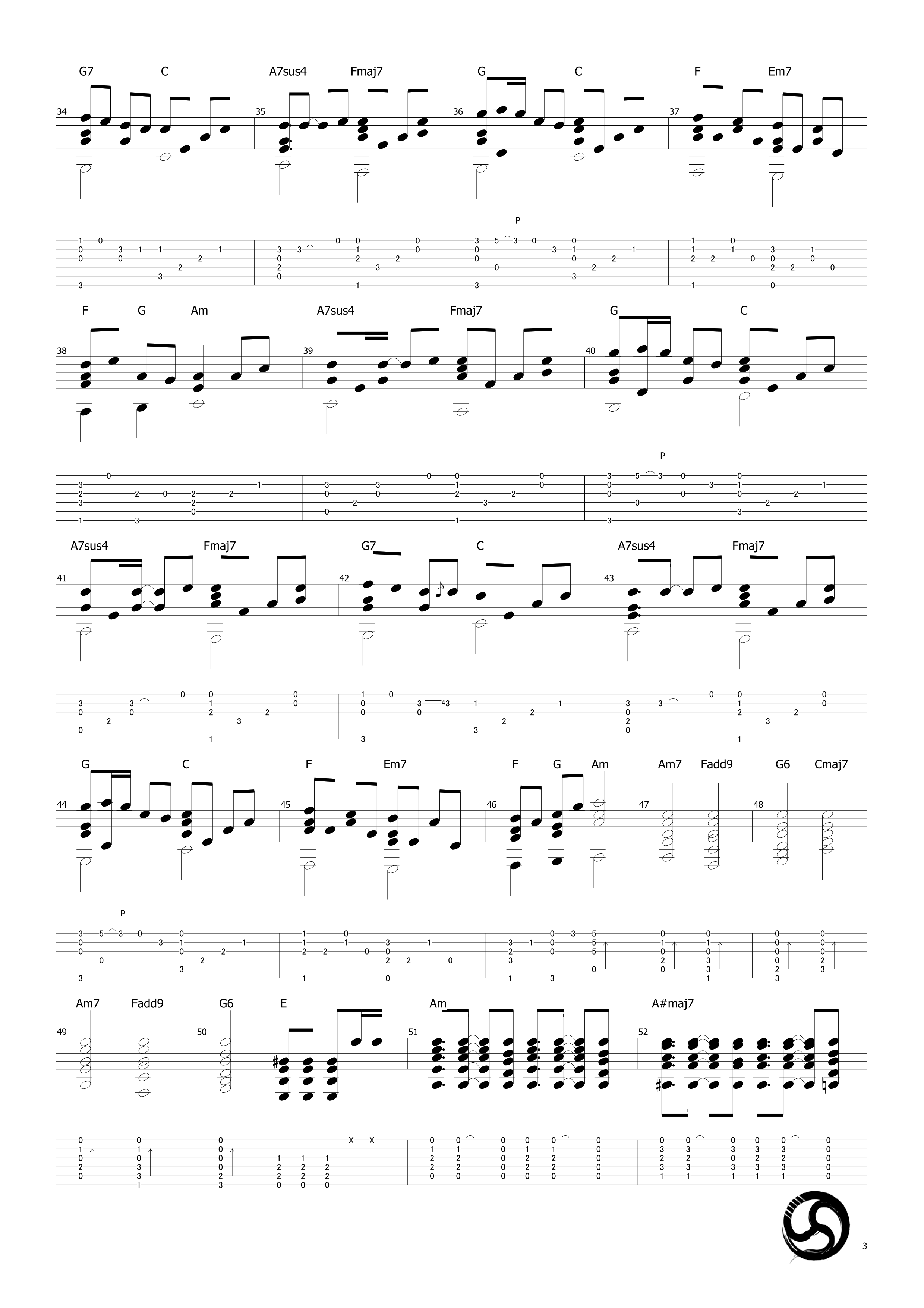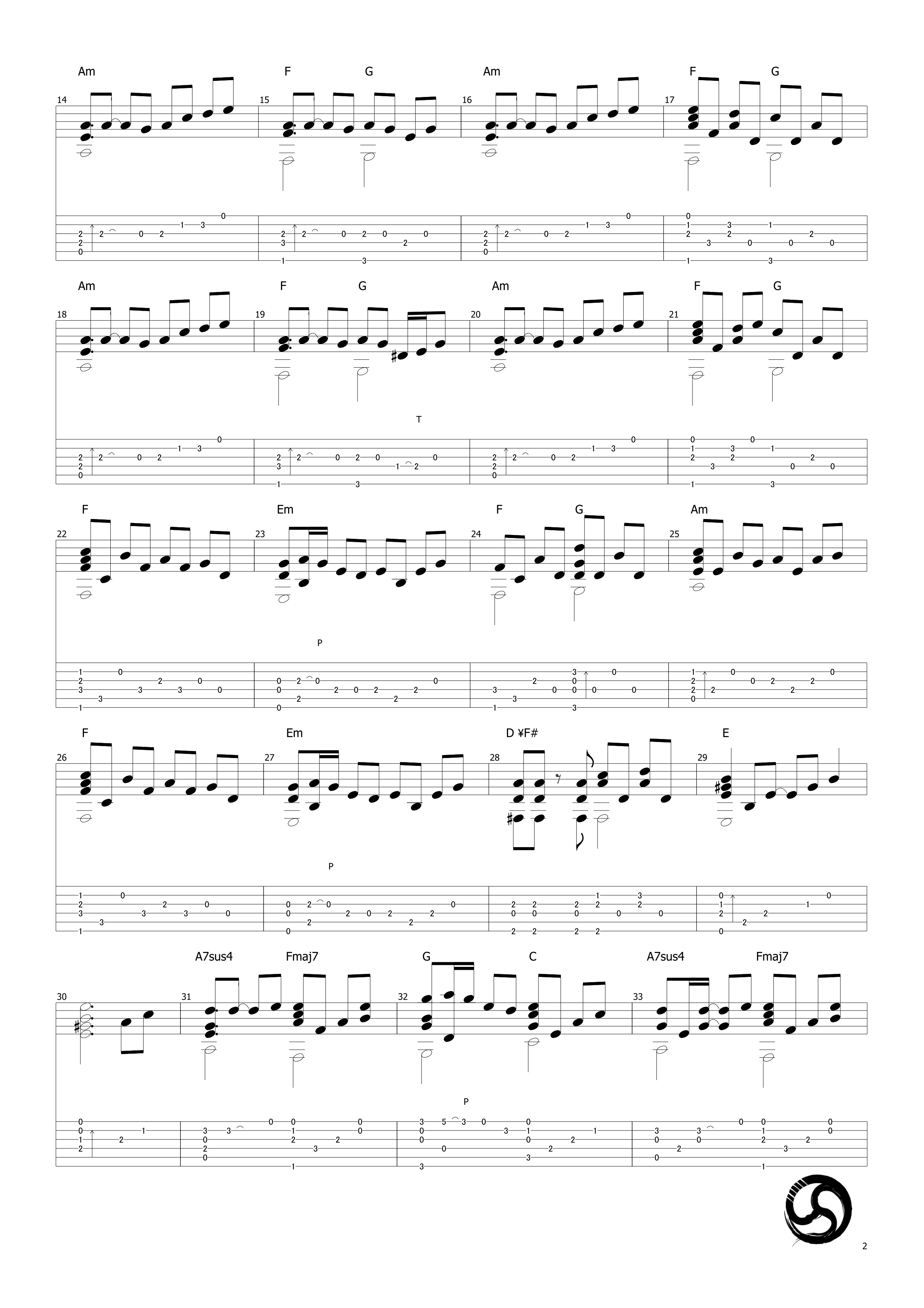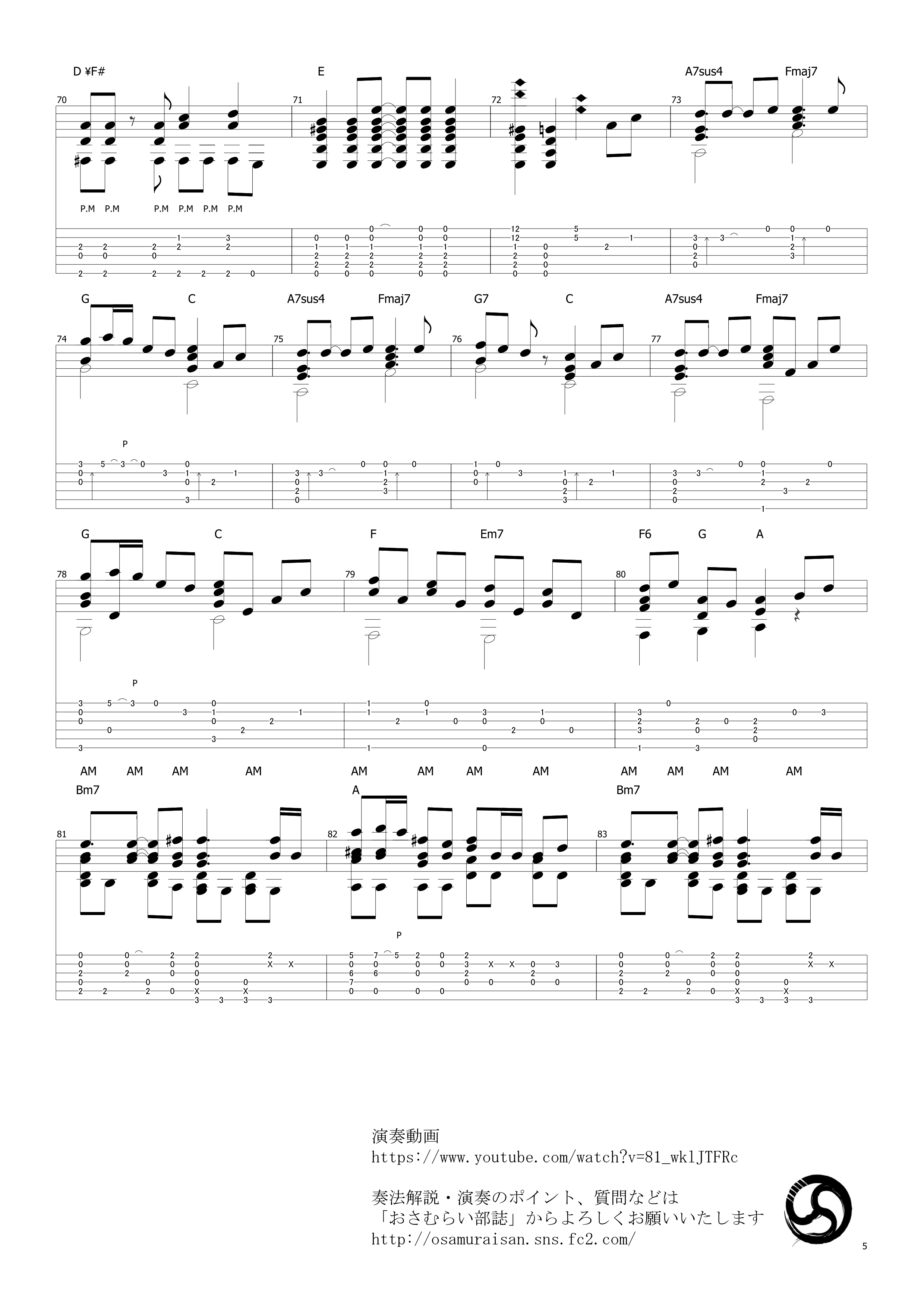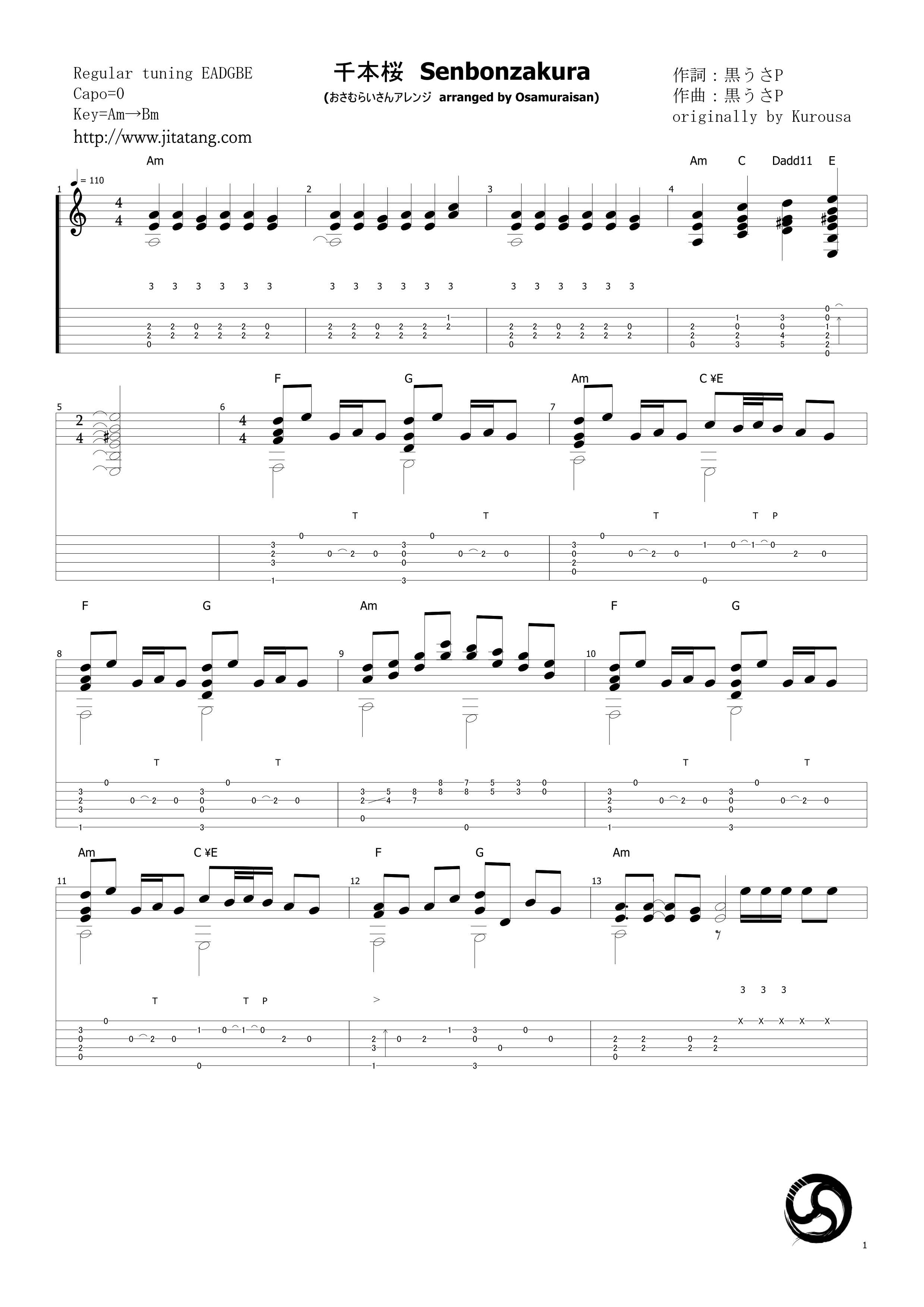 曲谱介绍: 武士桑《千本樱》吉他独奏谱,采用A调指法编配原版,共有5张高清图谱。