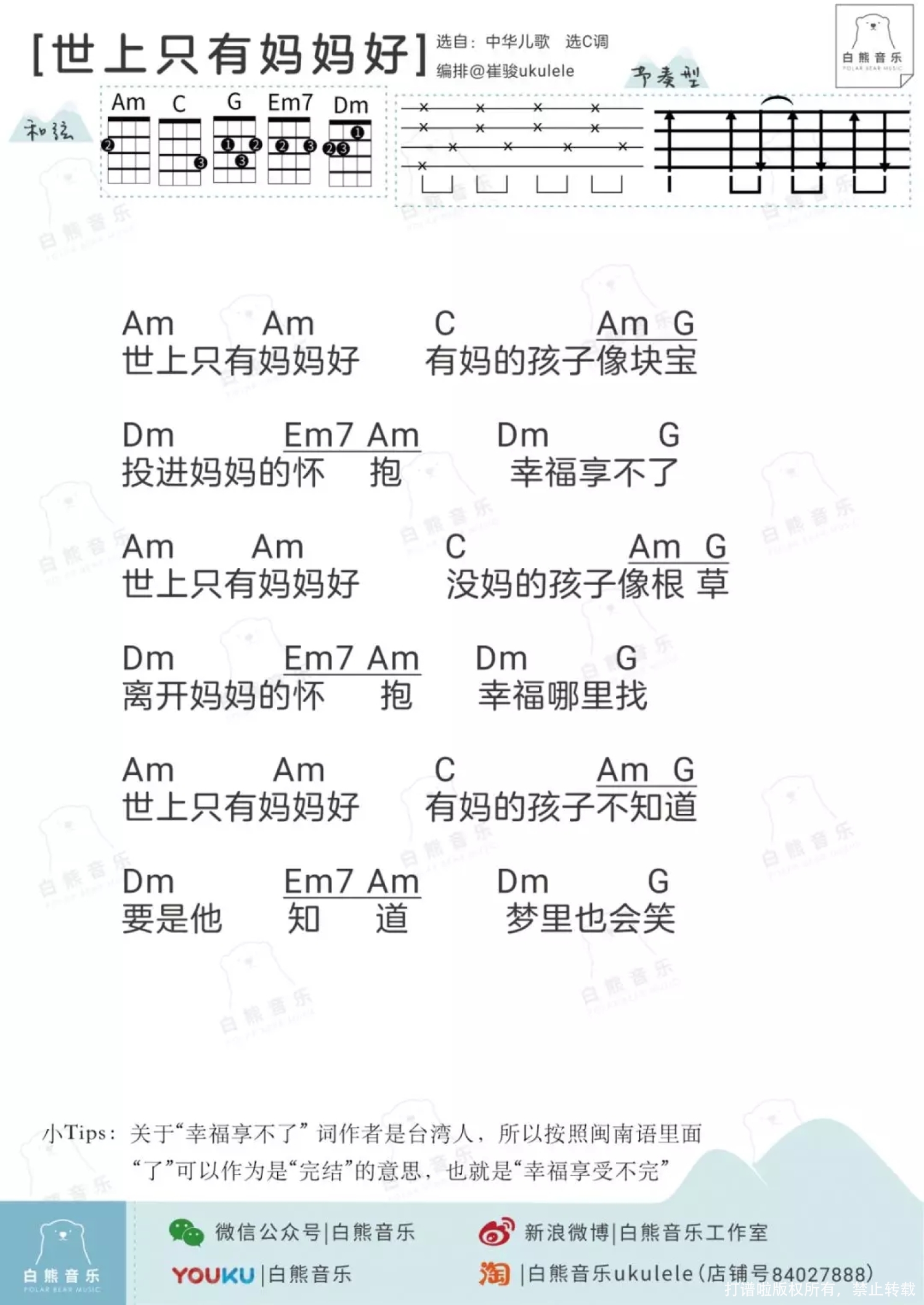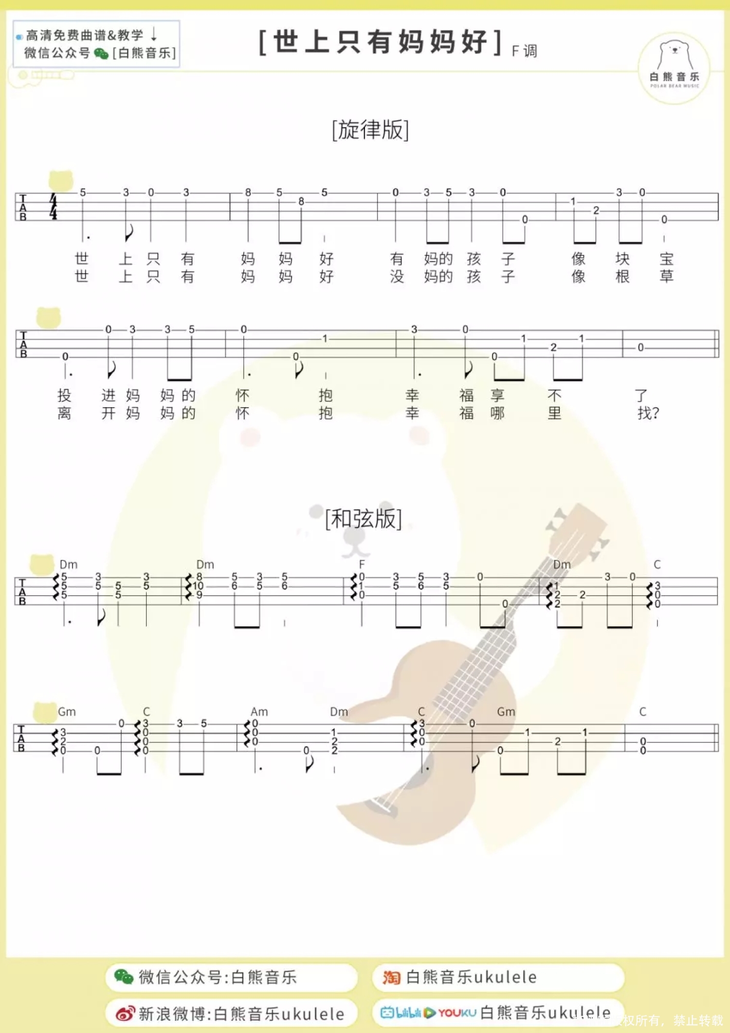 世上只有妈妈好尤克里里谱 - 白熊音乐