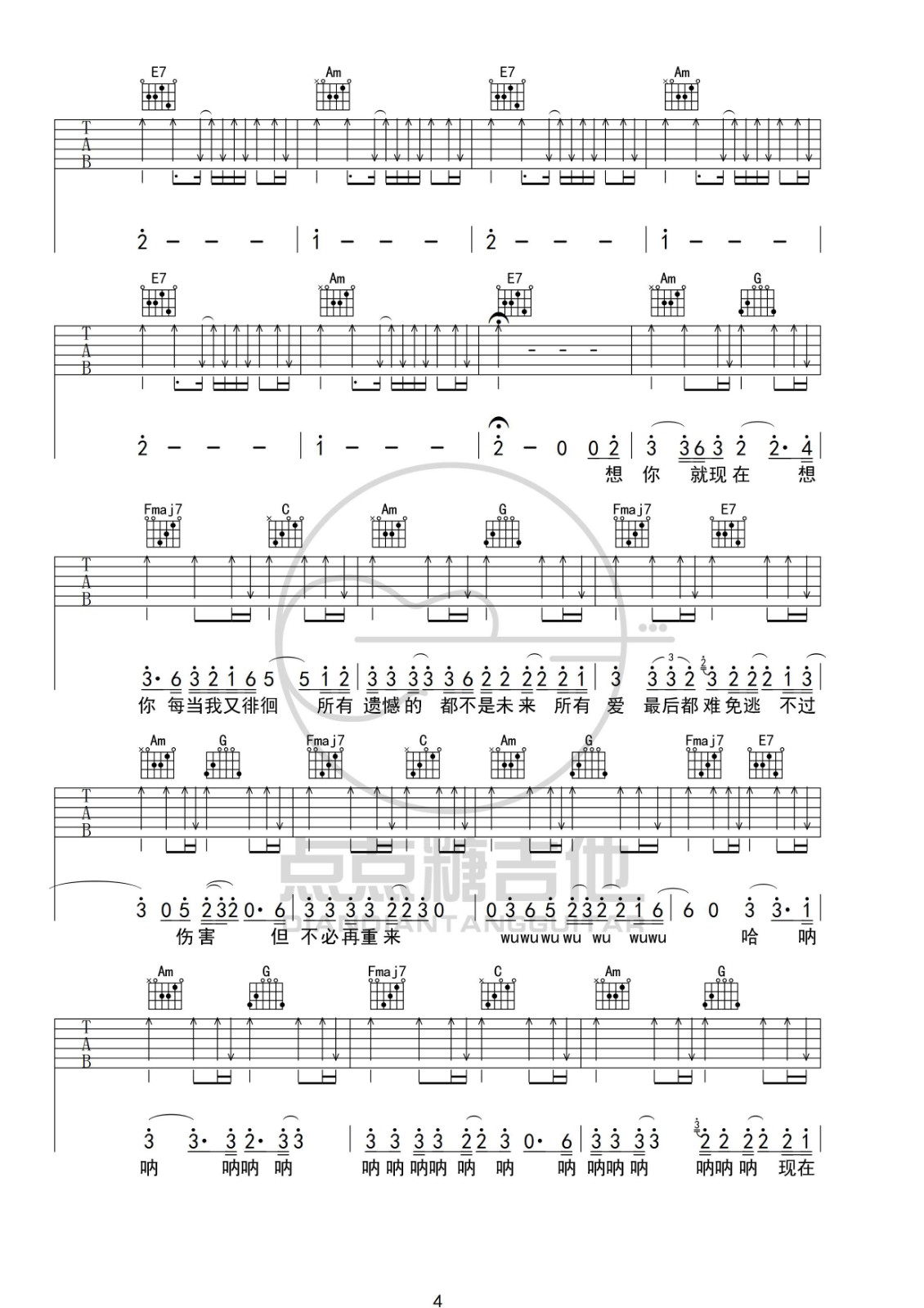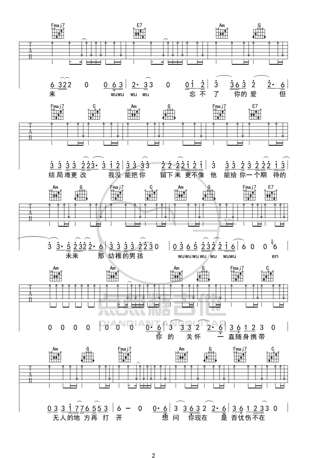 吉他弹唱C调来源:点点糖吉他153 浏览2024-01-22 16:12发布图谱共5页