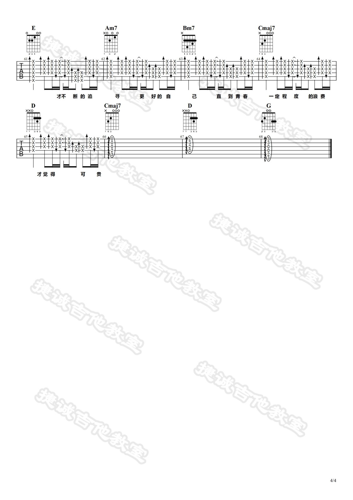 吉他弹唱G调来源:捷诚吉他教室105 浏览2024-01-22 16:18发布图谱共4页