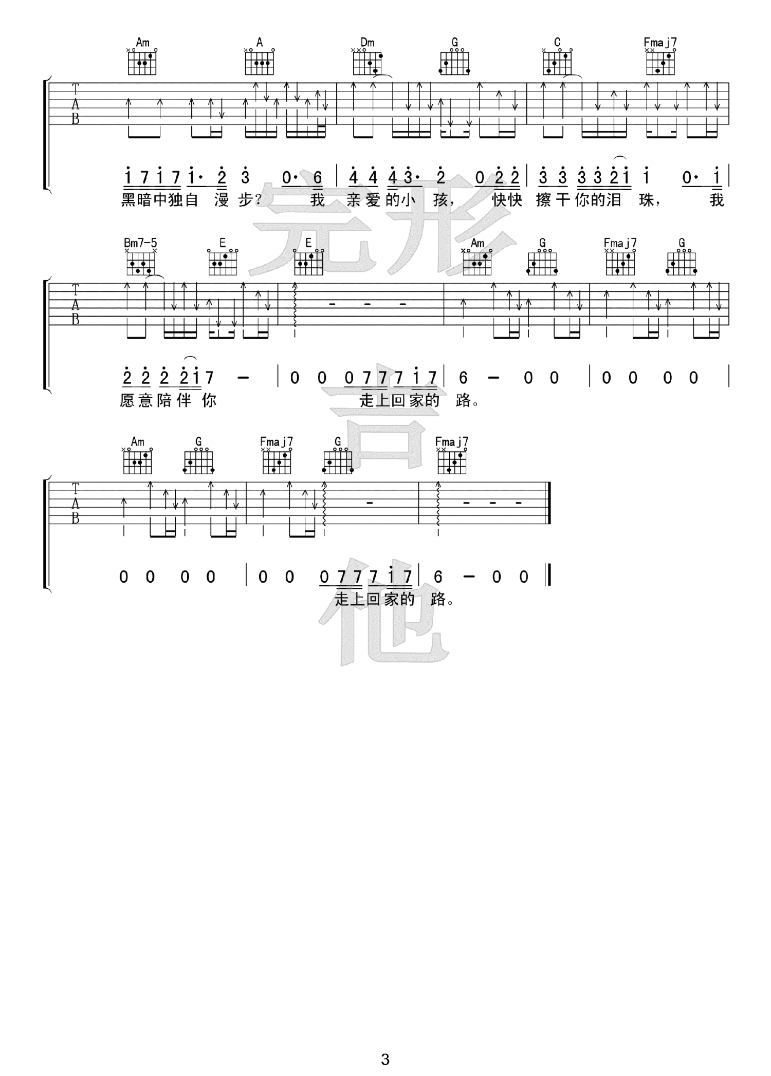 吉他弹唱C调来源:完形吉他--沈亮7443 浏览2018-03-19 13:34发布图谱共3页