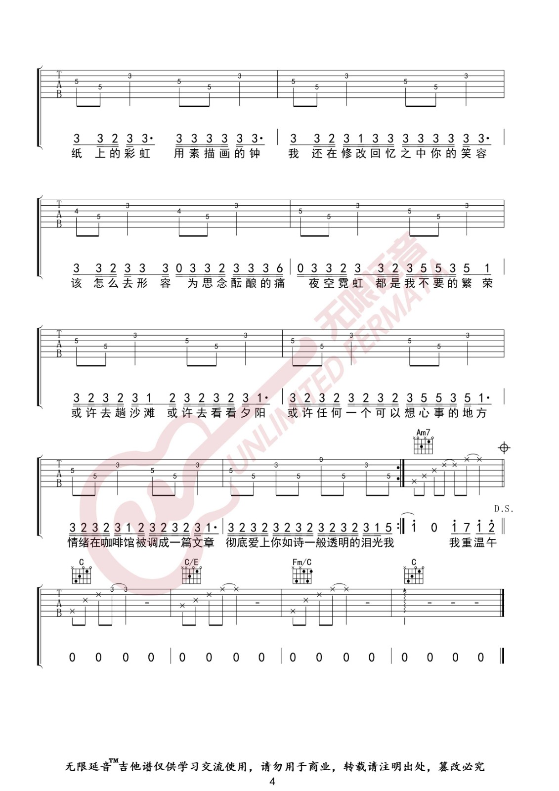 吉他弹唱C调来源:无限延音115 浏览2024-01-22 16:34发布图谱共4页