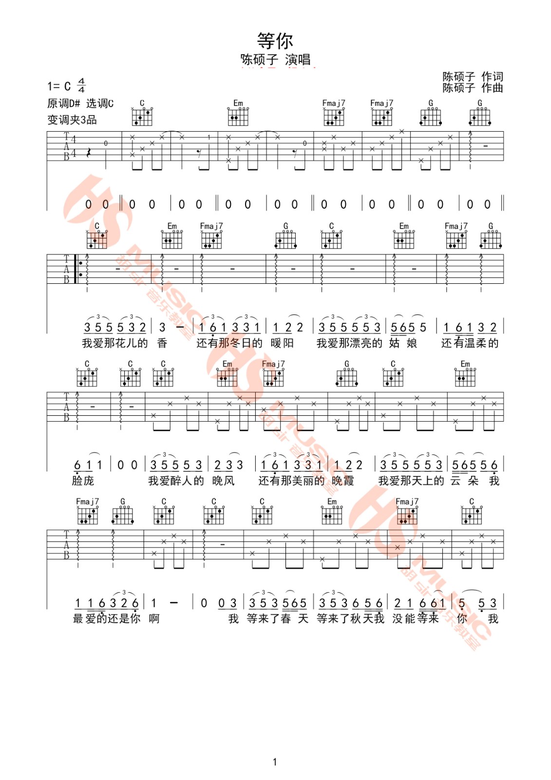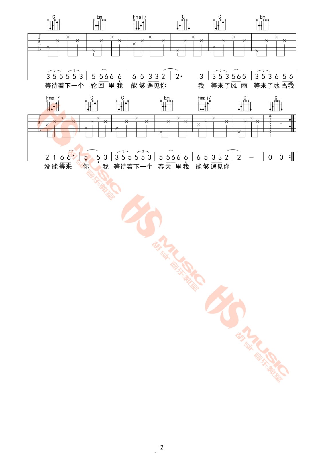 吉他弹唱C调来源:胡sir音乐吉他教室236 浏览2024-01-22 16:34发布图谱共2页