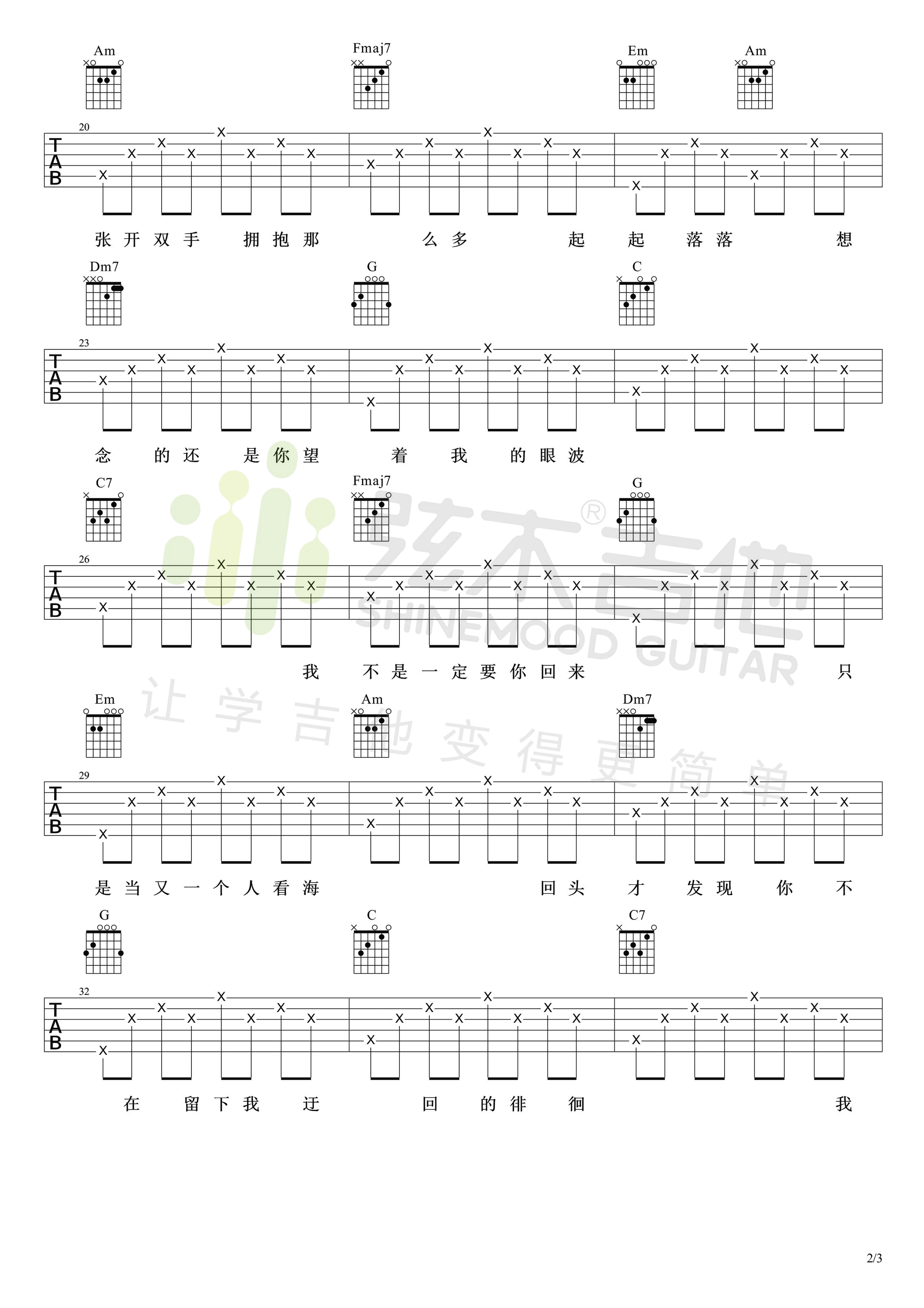 吉他弹唱C调来源:弦木吉他142 浏览2024-01-22 16:47发布图谱共3页
