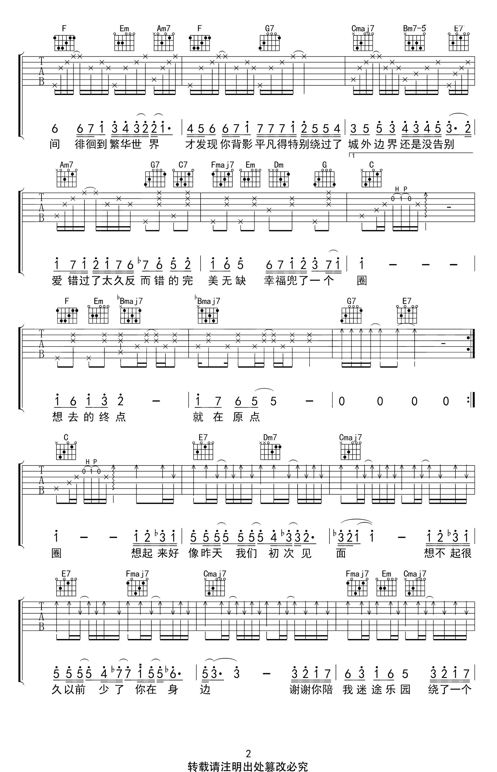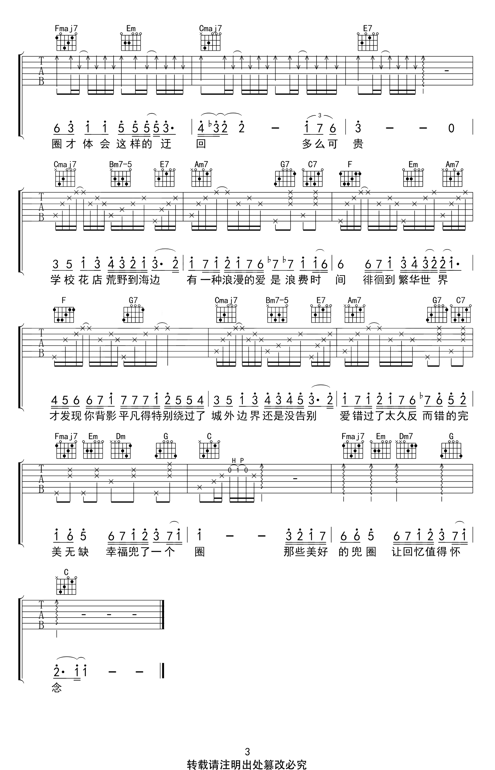 当前位置:琴谱网>吉他弹唱>兜圈
