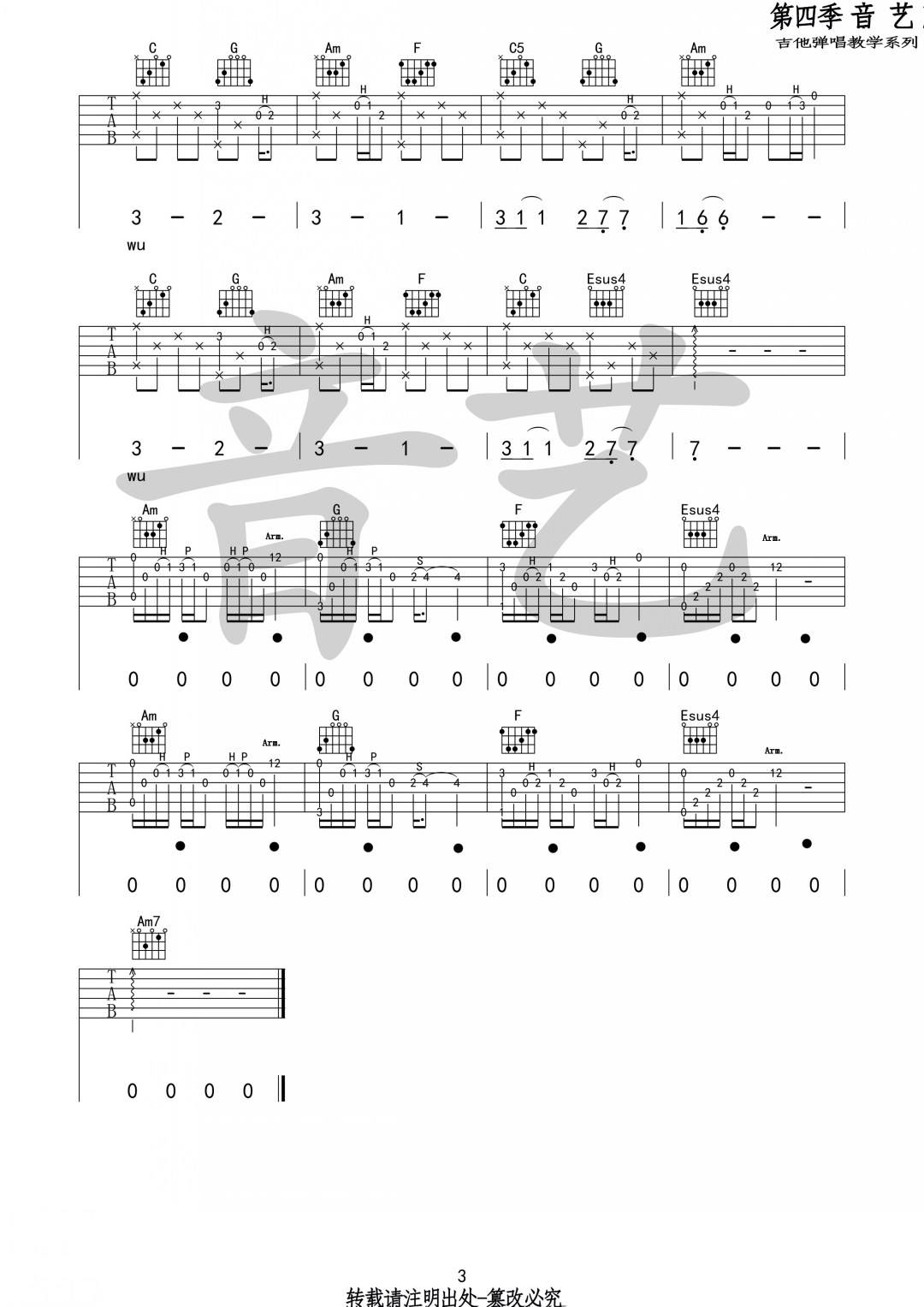 吉他弹唱C调来源:音艺吉他专家136 浏览2024-01-22 17:20发布图谱共3页