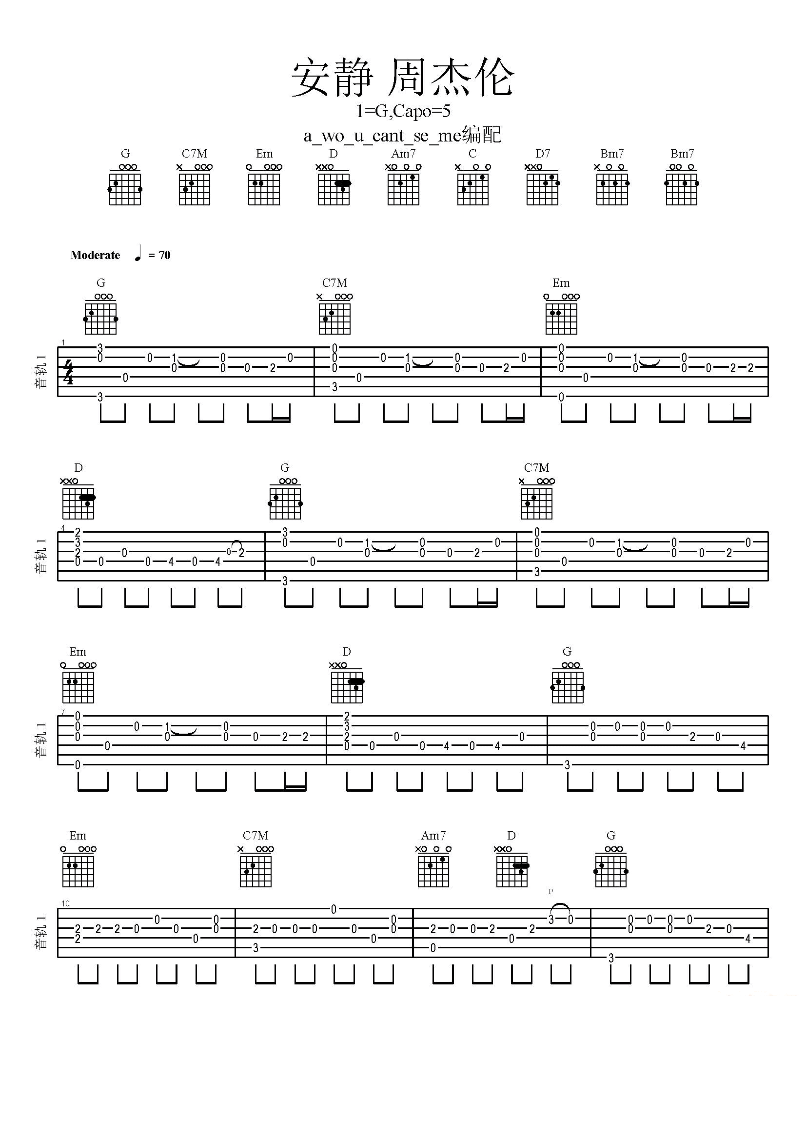 安静吉他谱 - 周杰伦 - 吉他独奏谱
