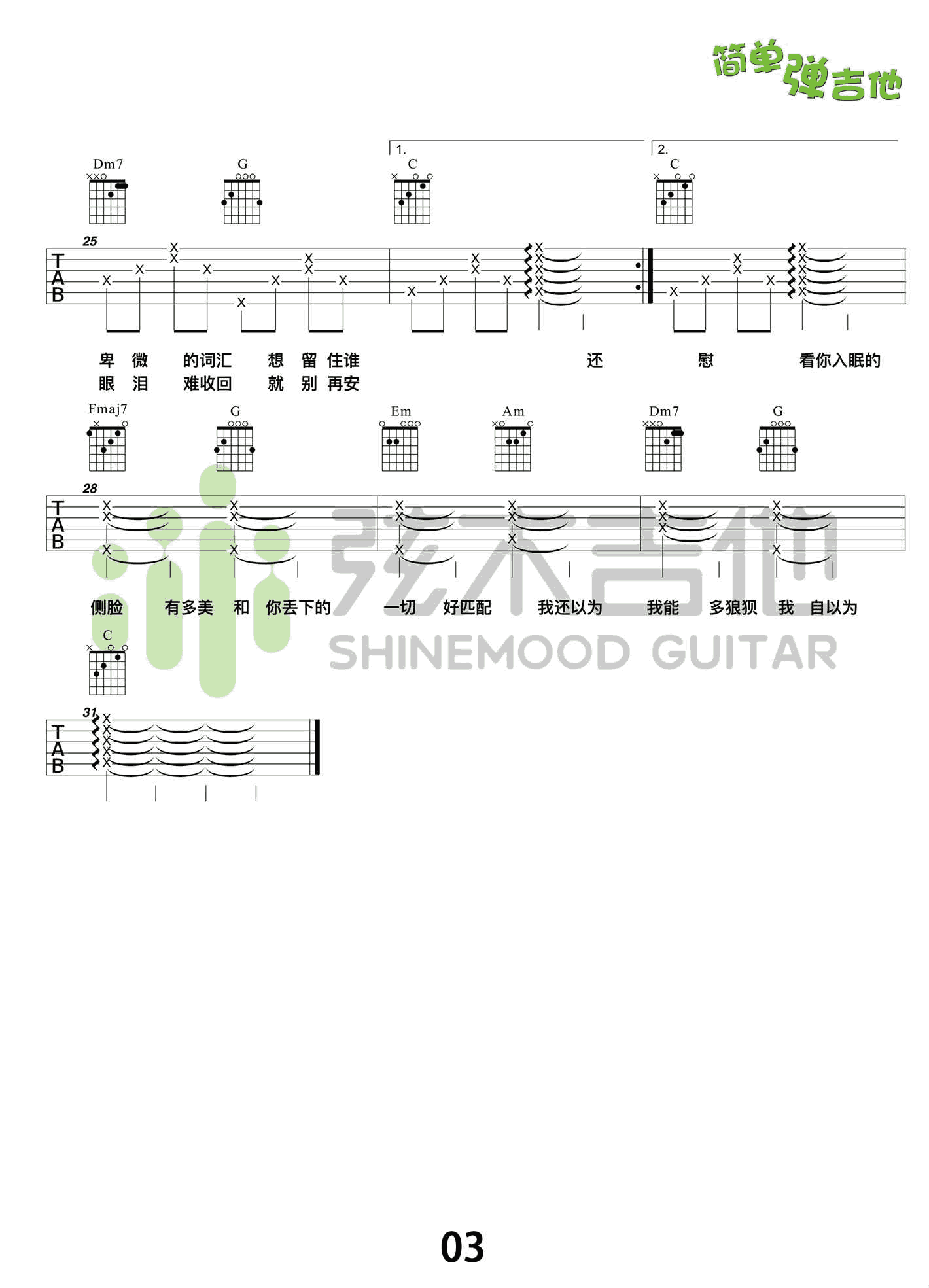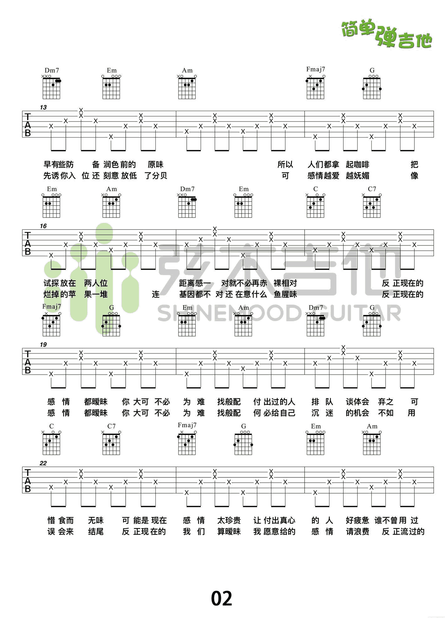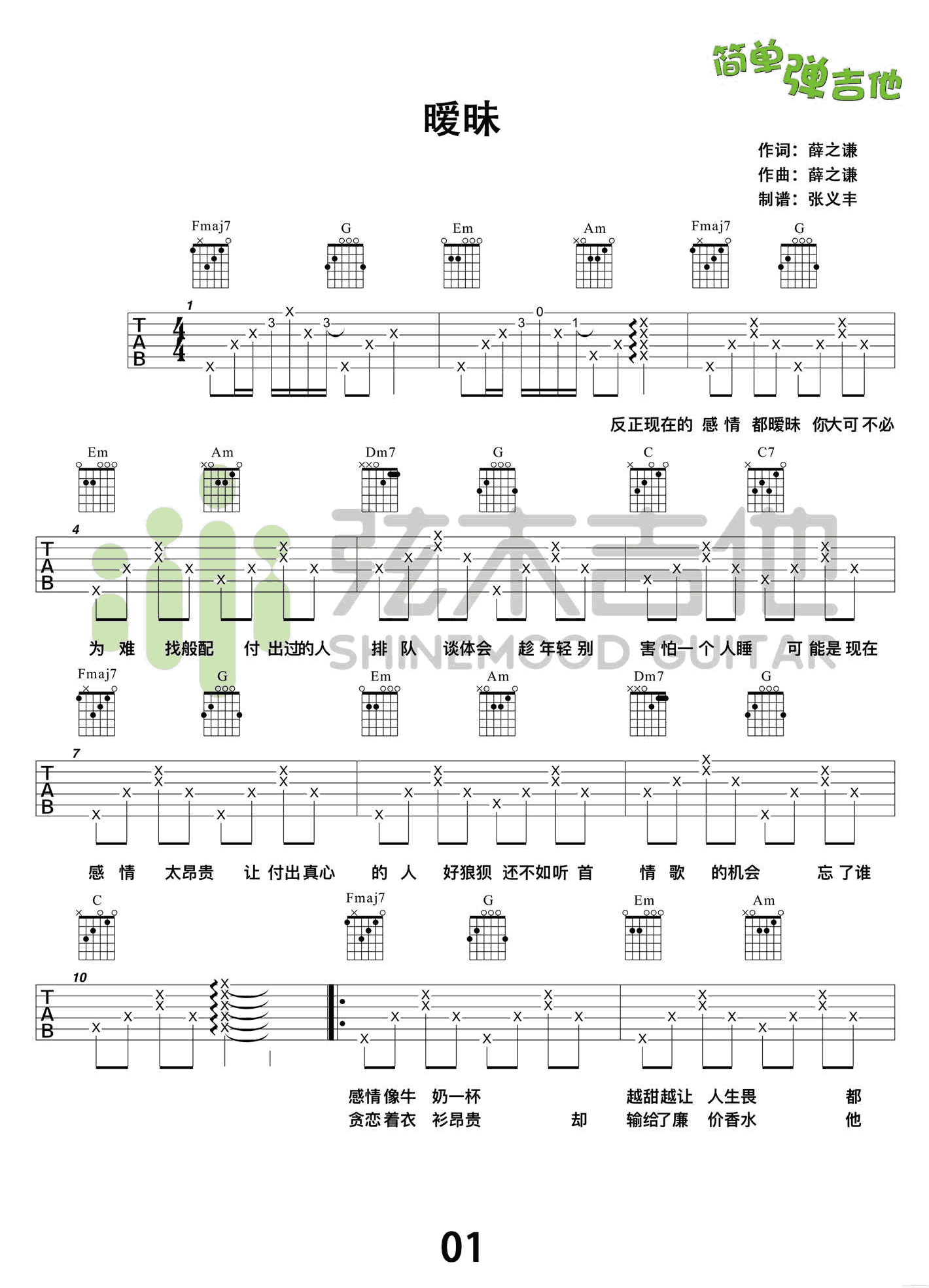 曲谱介绍: 薛之谦《暧昧》吉他弹唱谱,弦木吉他编配出品,共有3张高清图谱。