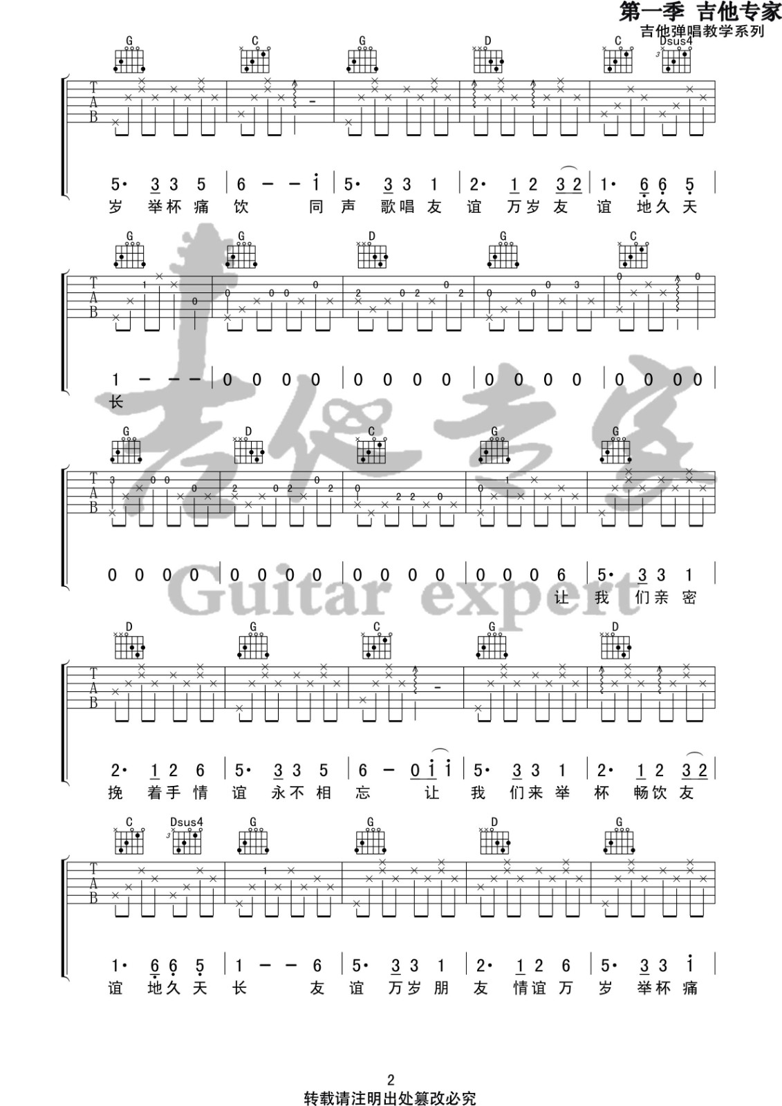 当前位置:琴谱网>吉他弹唱>友谊地久天长