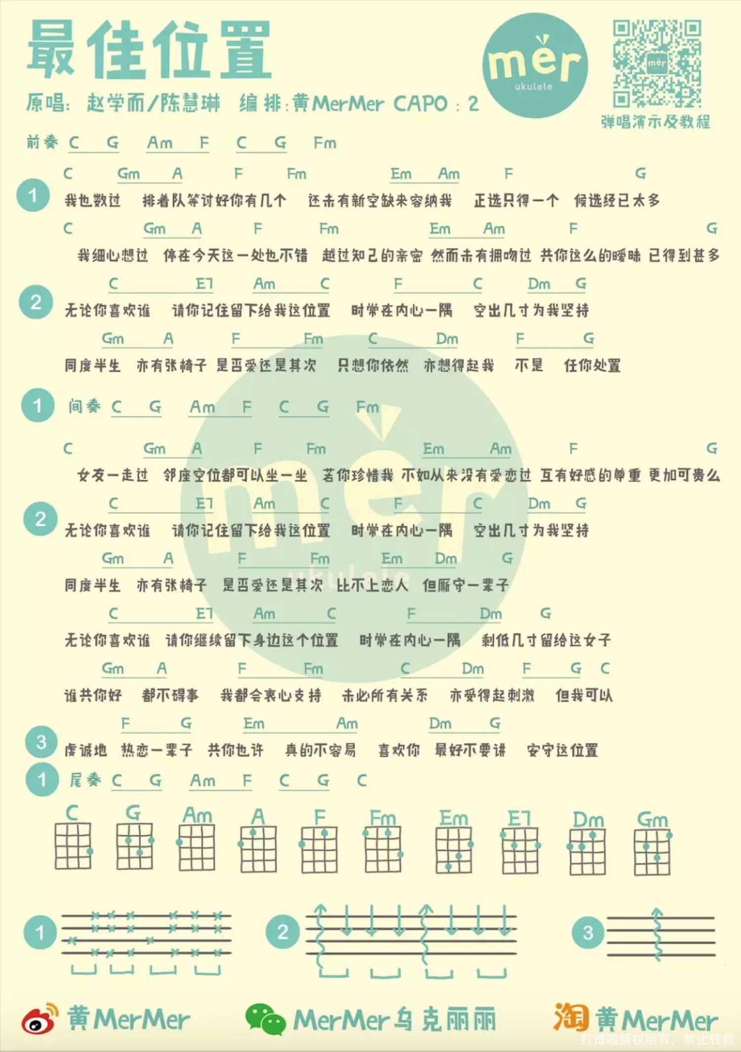 最佳位置尤克里里谱 - 陈慧琳/赵学而