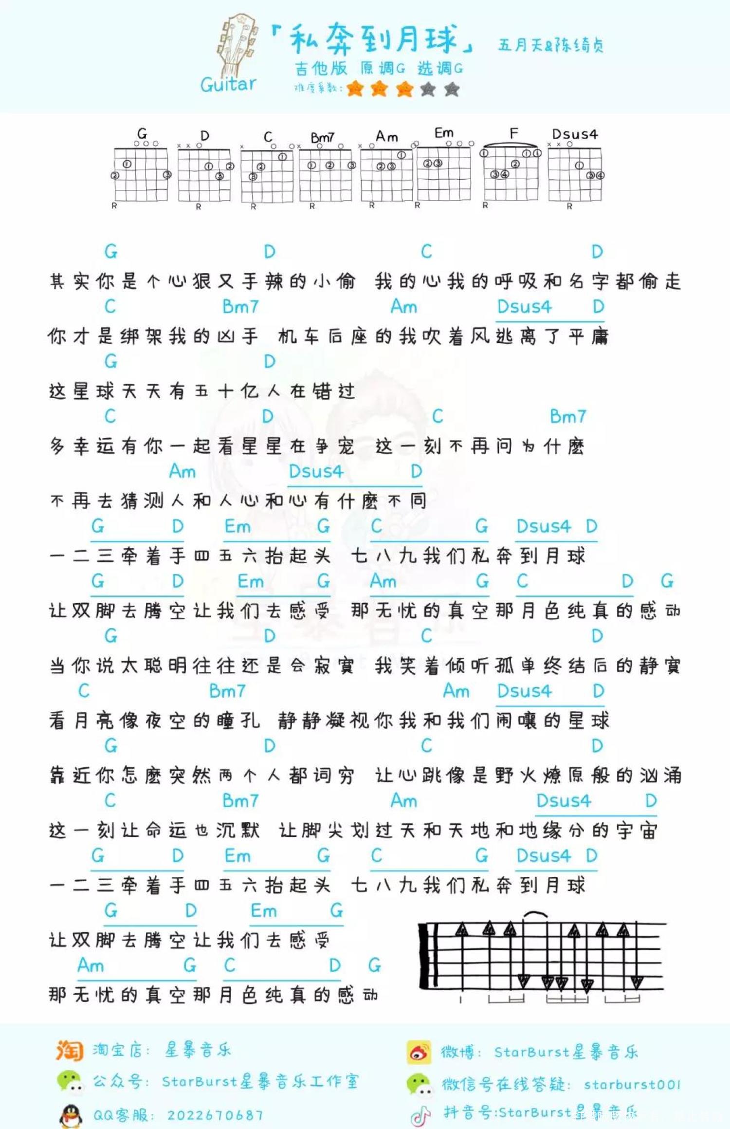 私奔到月球尤克里里谱 - 五月天/陈绮贞