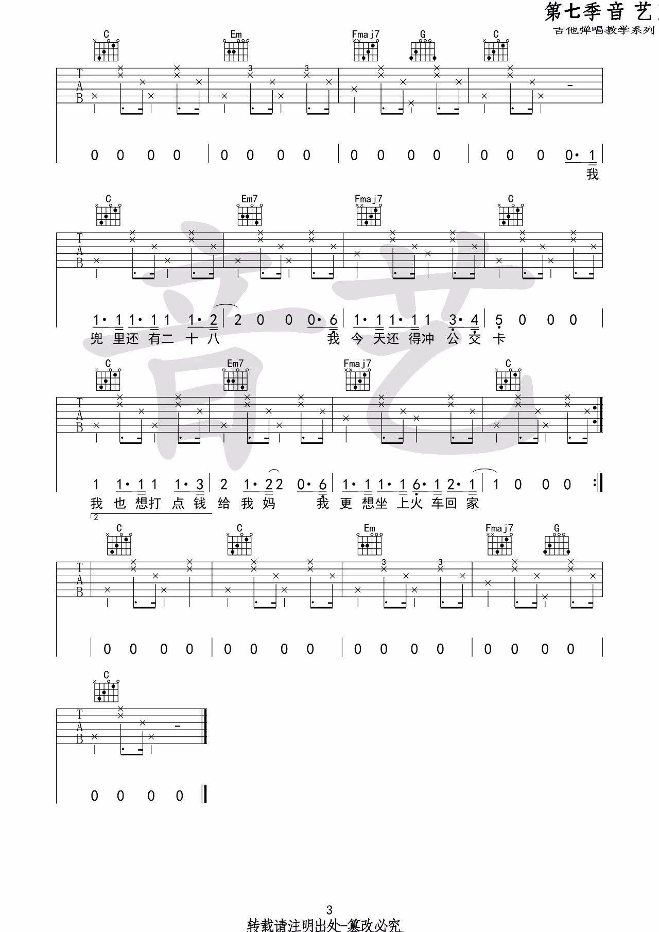 吉他弹唱C调来源:音艺吉他112 浏览2024-01-22 18:49发布图谱共3页