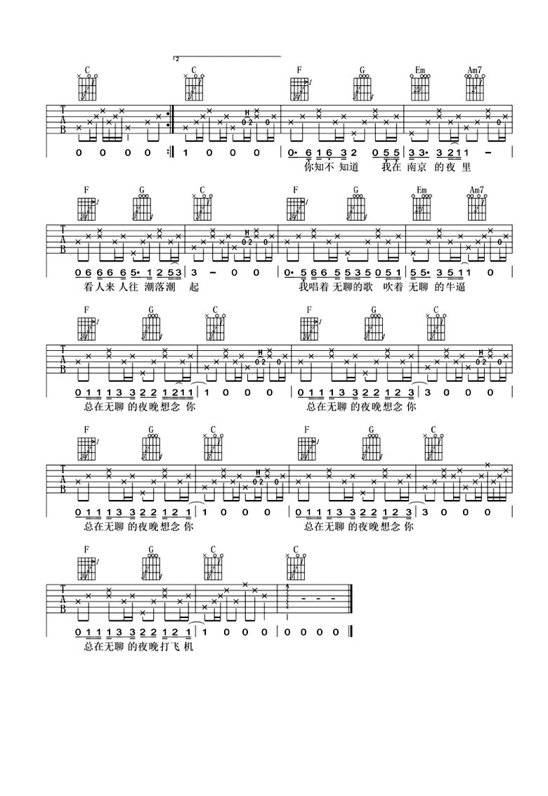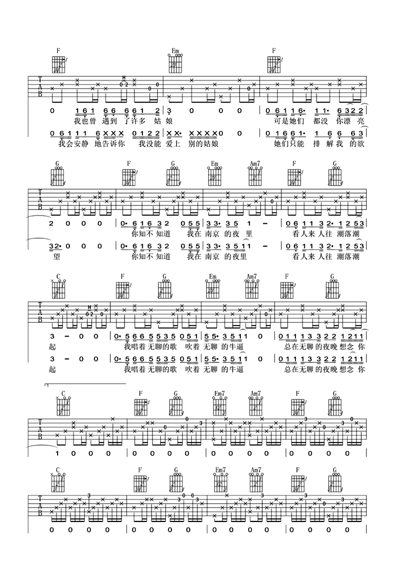 当前位置:琴谱网>吉他弹唱>我在南京的夜里