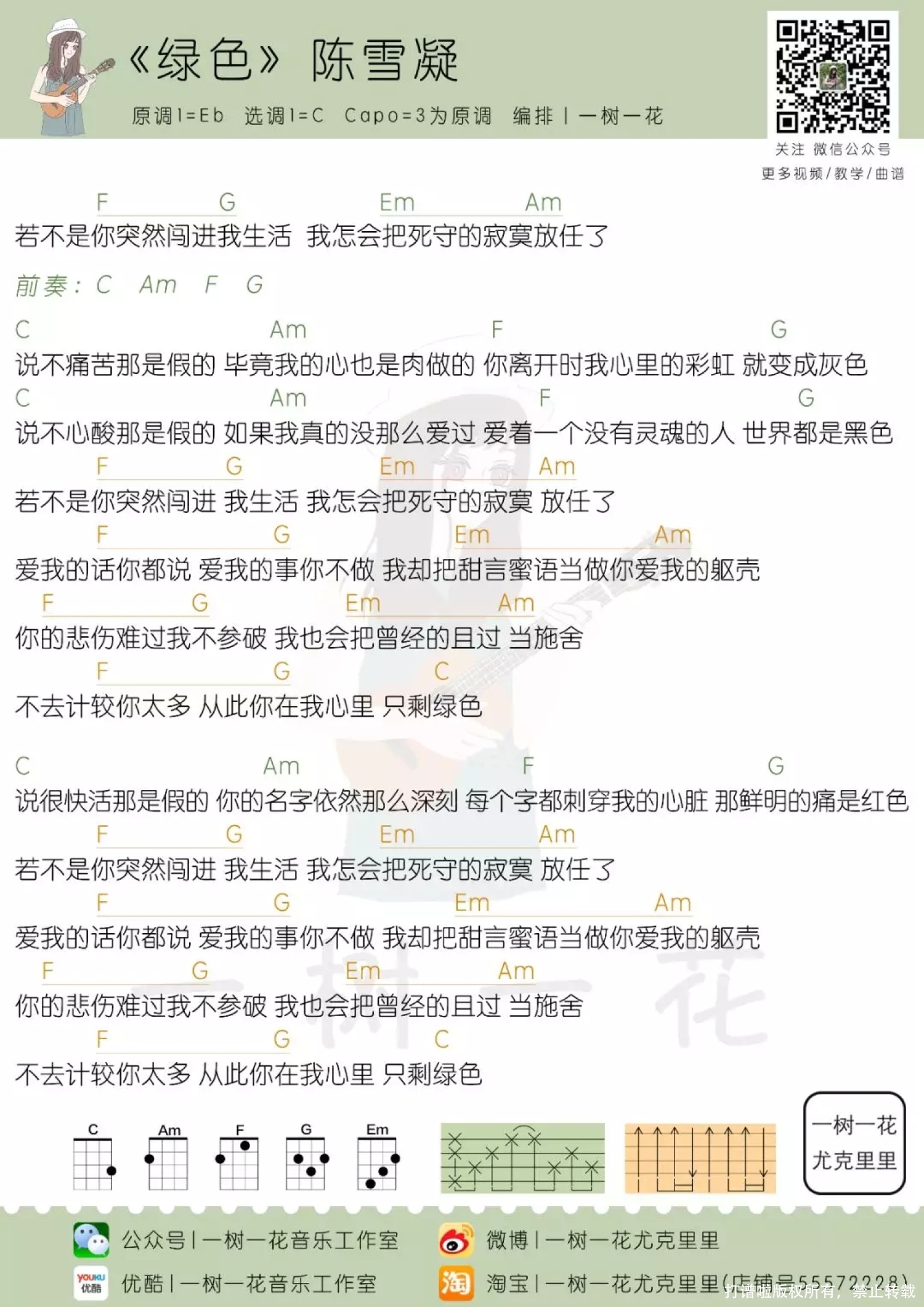 曲谱介绍: 弹唱演示   绿色 弹唱谱