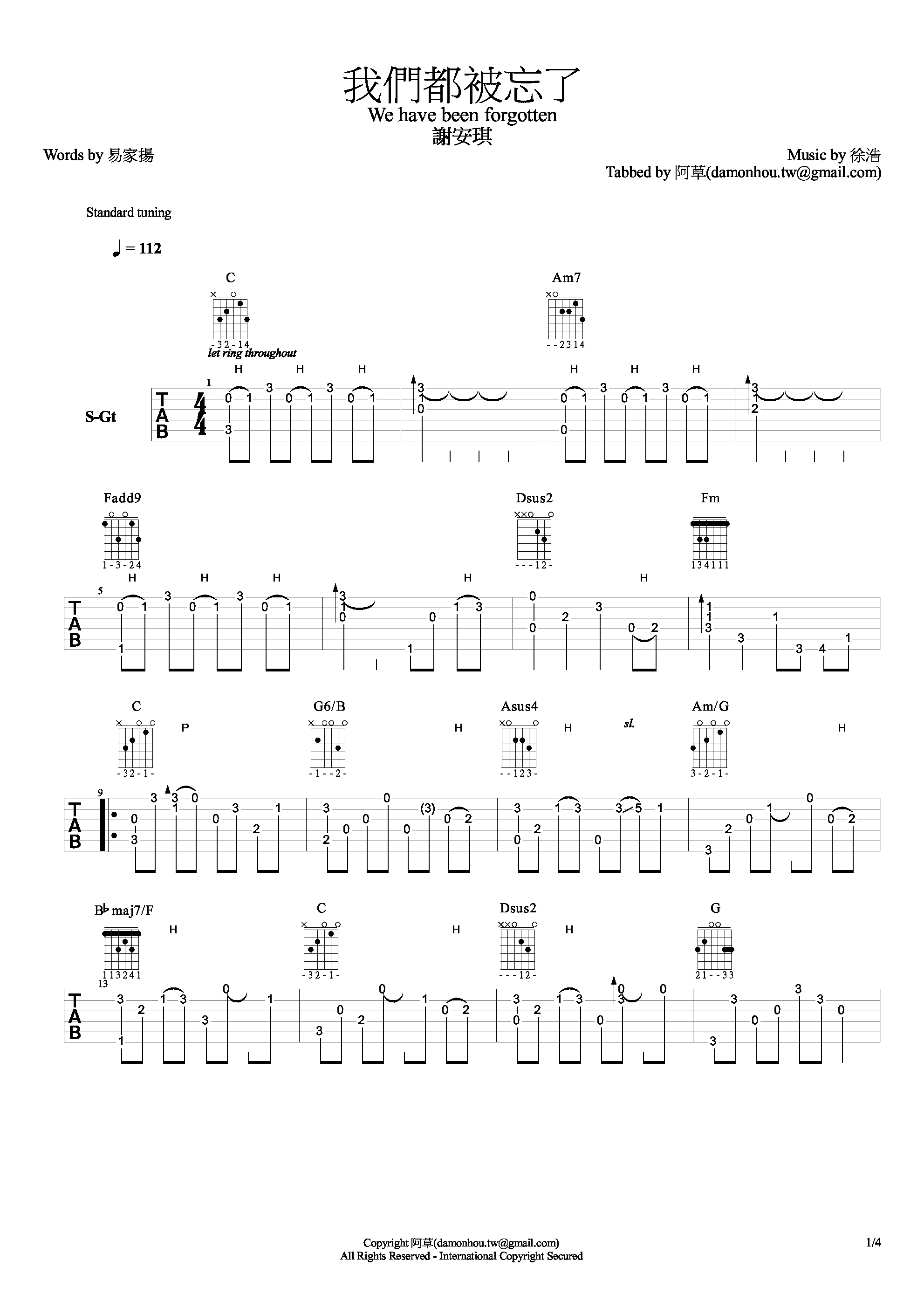 我们都被忘了吉他谱 - 谢安琪 - C调吉他弹唱谱