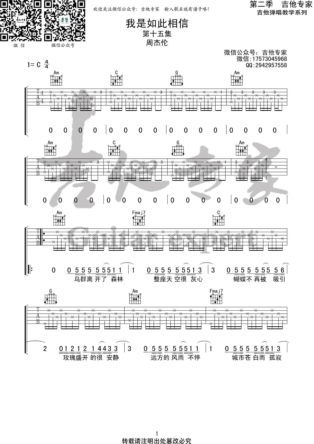我是如此相信吉他谱 - 周杰伦 - C调吉他弹唱谱