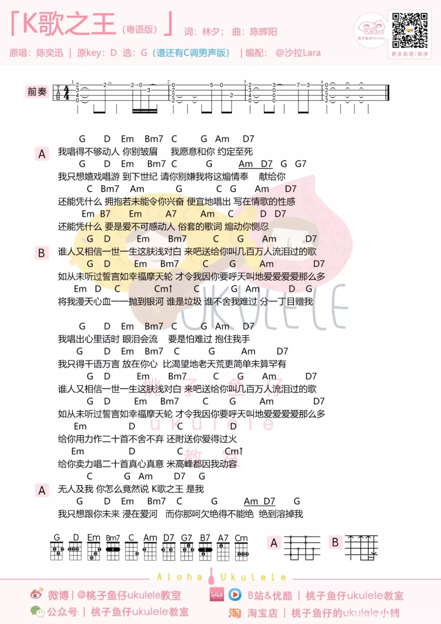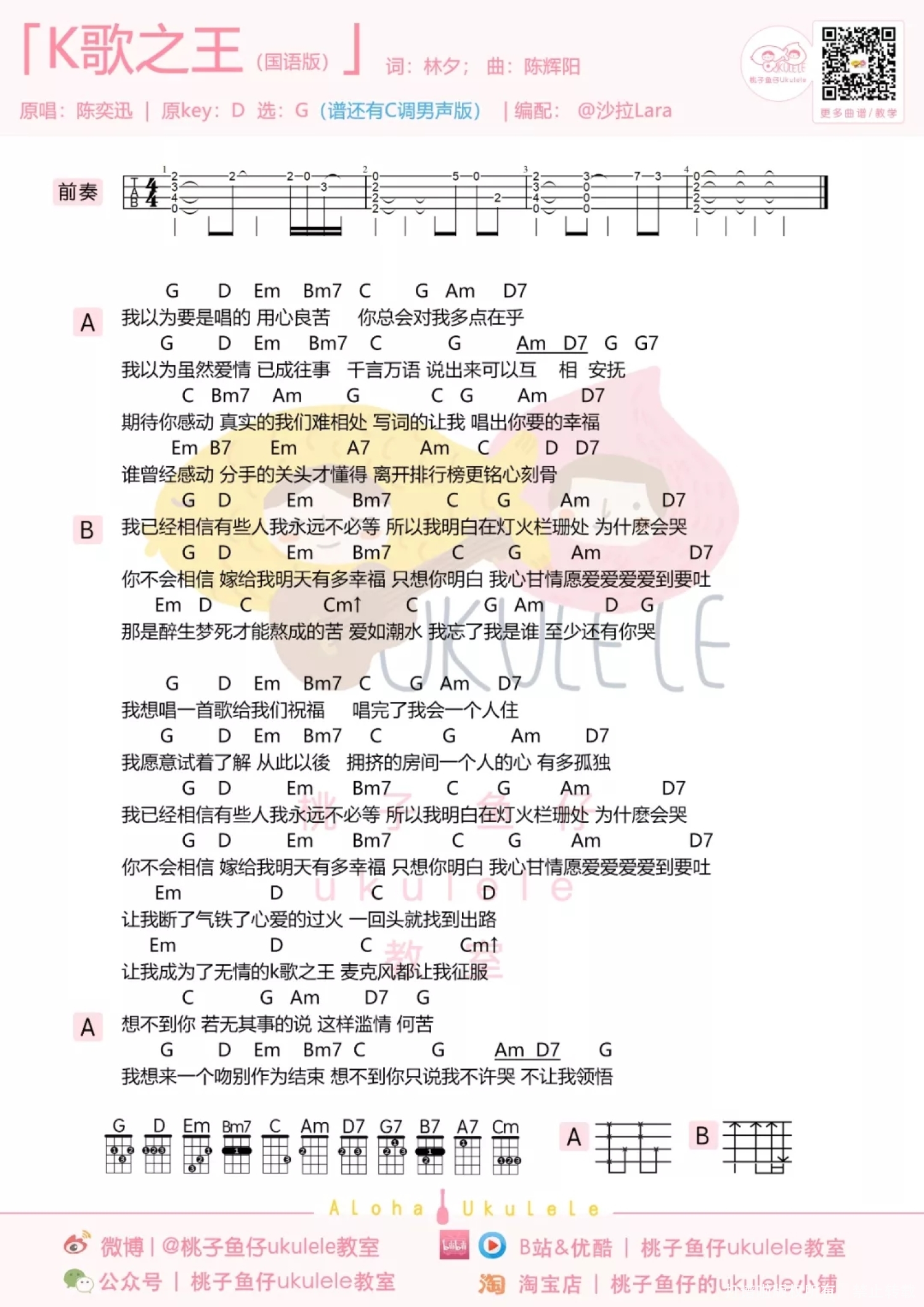 当前位置:琴谱网>尤克里里>K歌之王