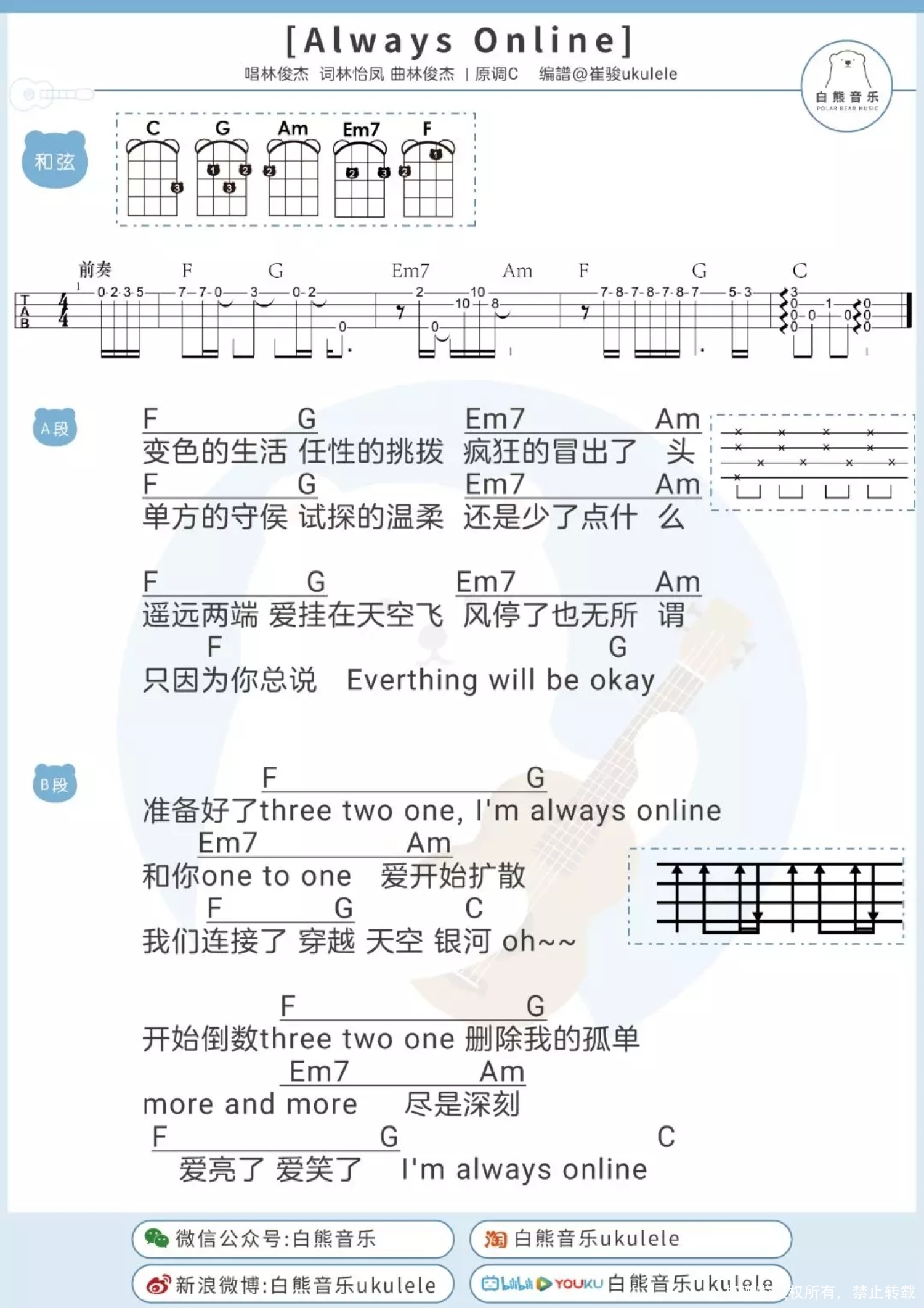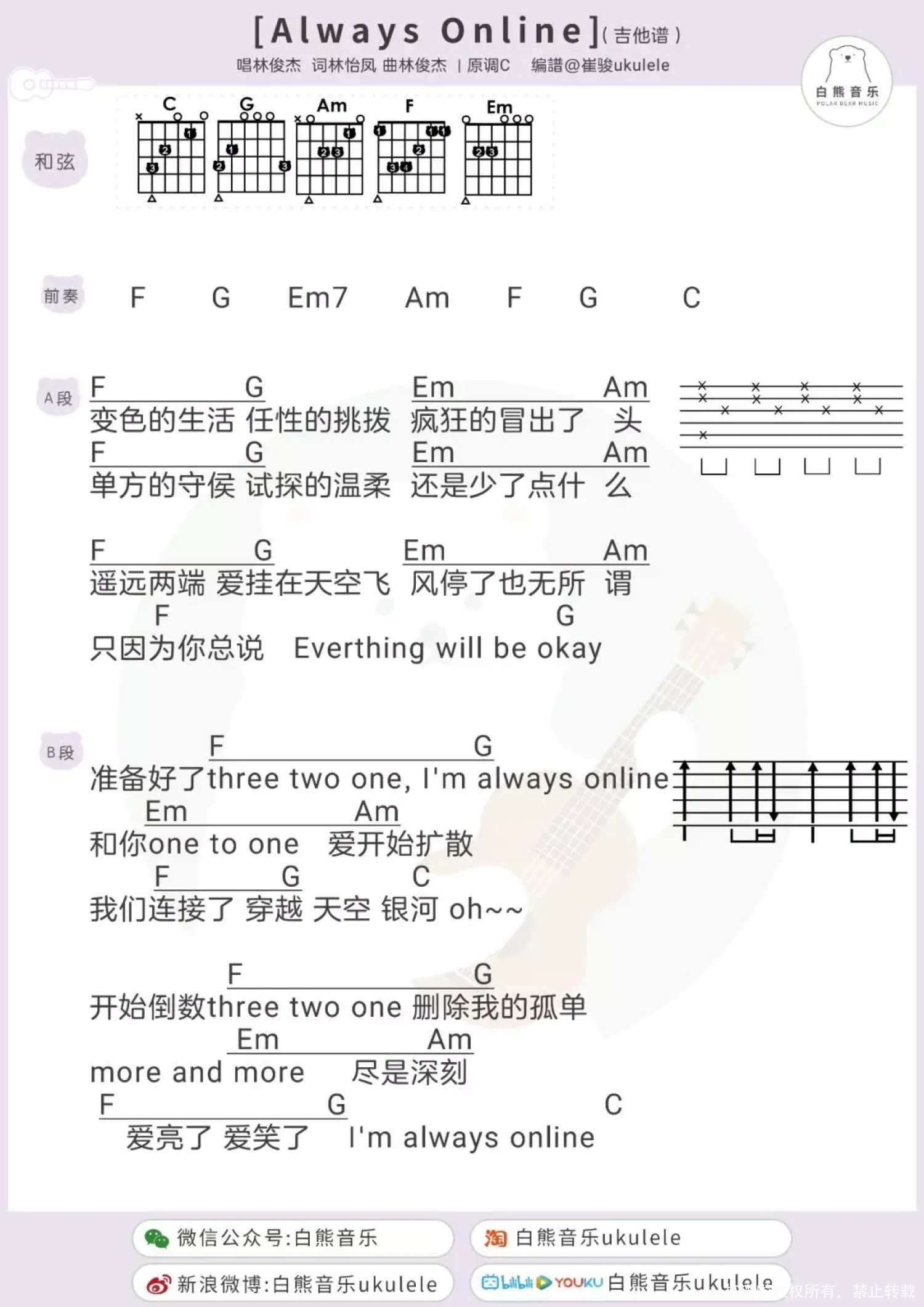 曲谱介绍: Always Online 尤克里里谱:   Always Online吉他谱: