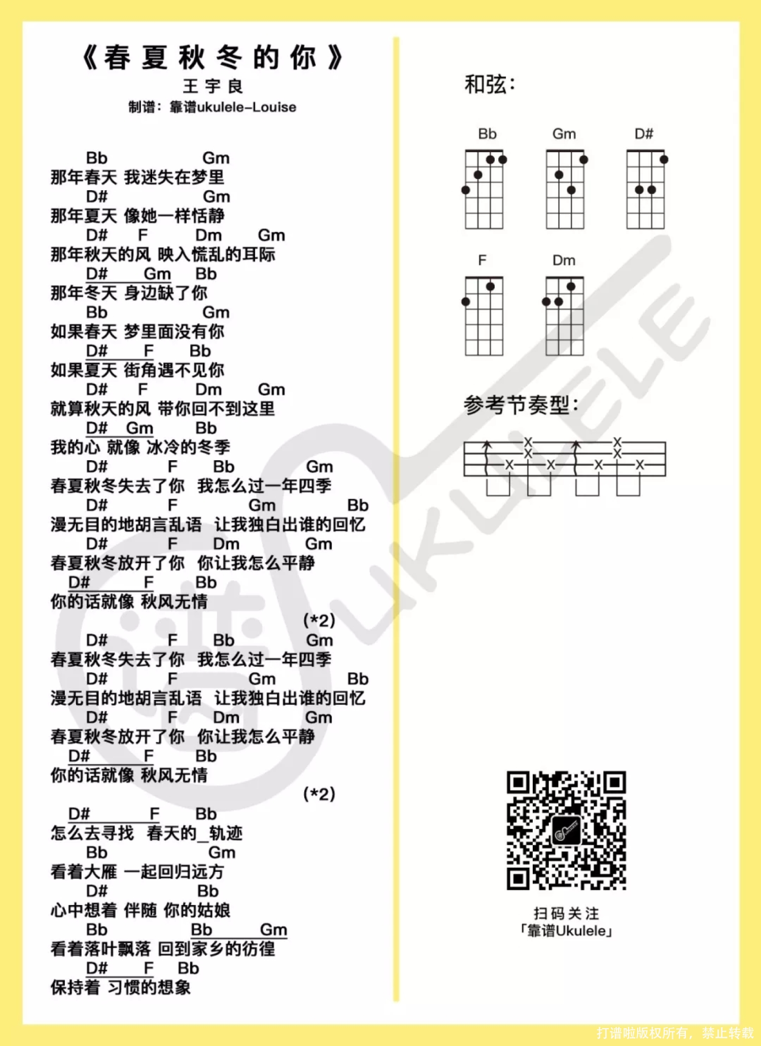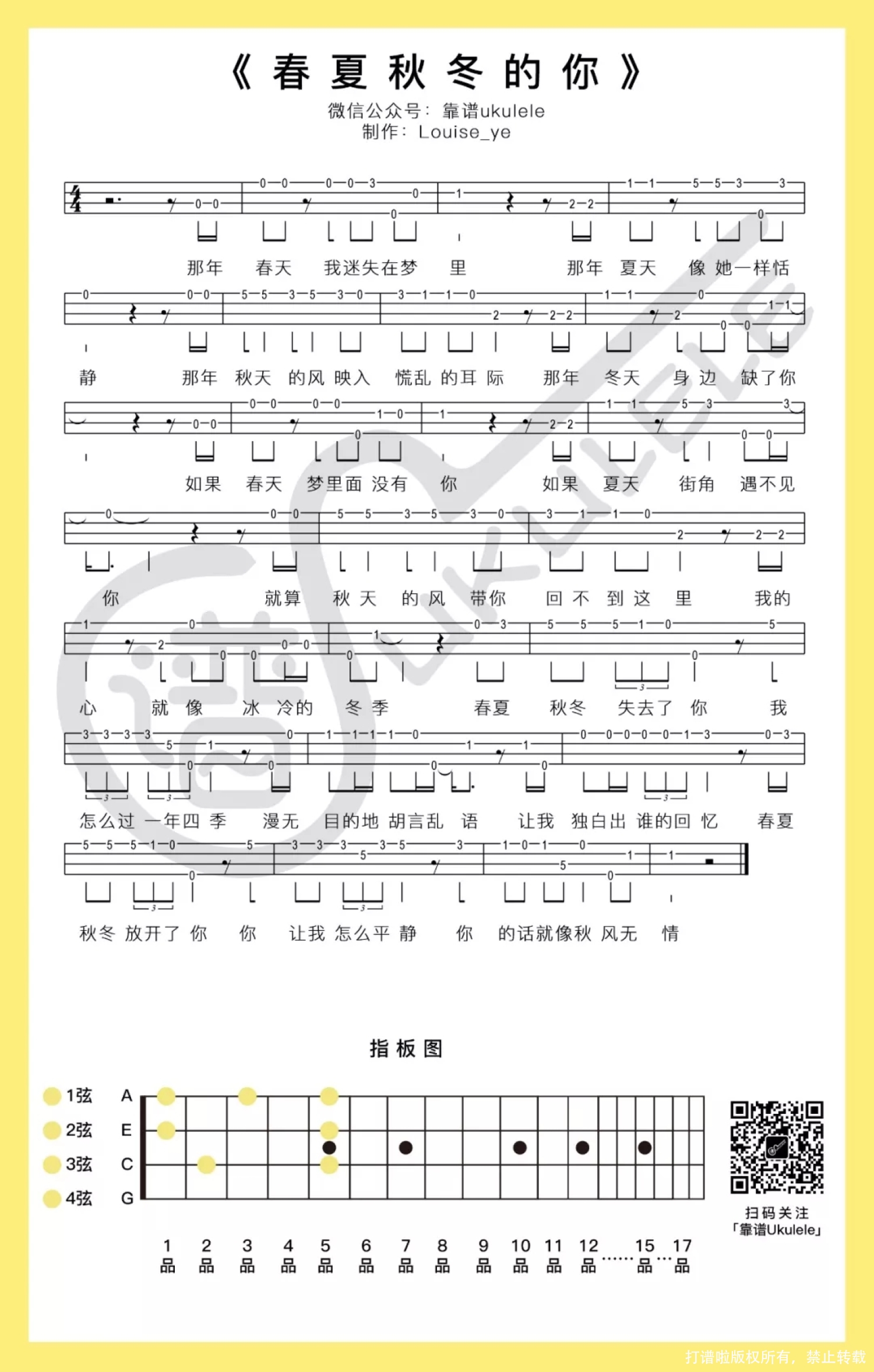 春夏秋冬的你尤克里里谱 - 王宇良