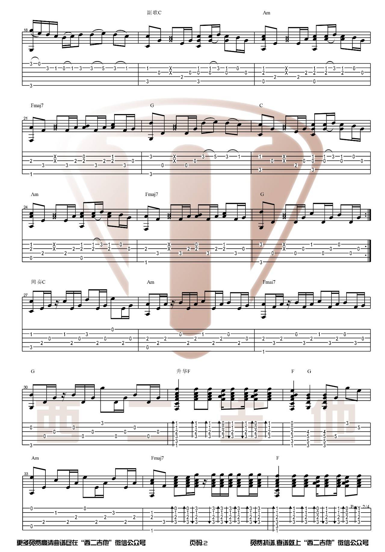 曲谱介绍: 邓紫棋《喜欢你》吉他独奏谱,西二吉他编配出品,共有3张高清图谱。