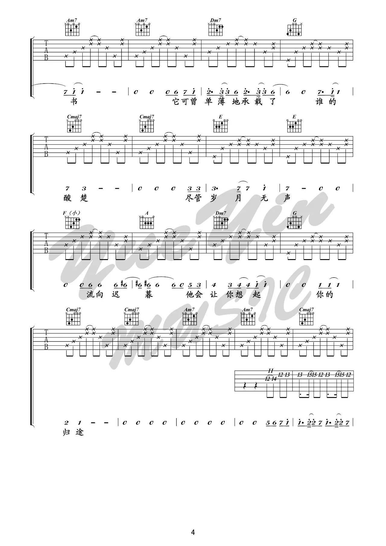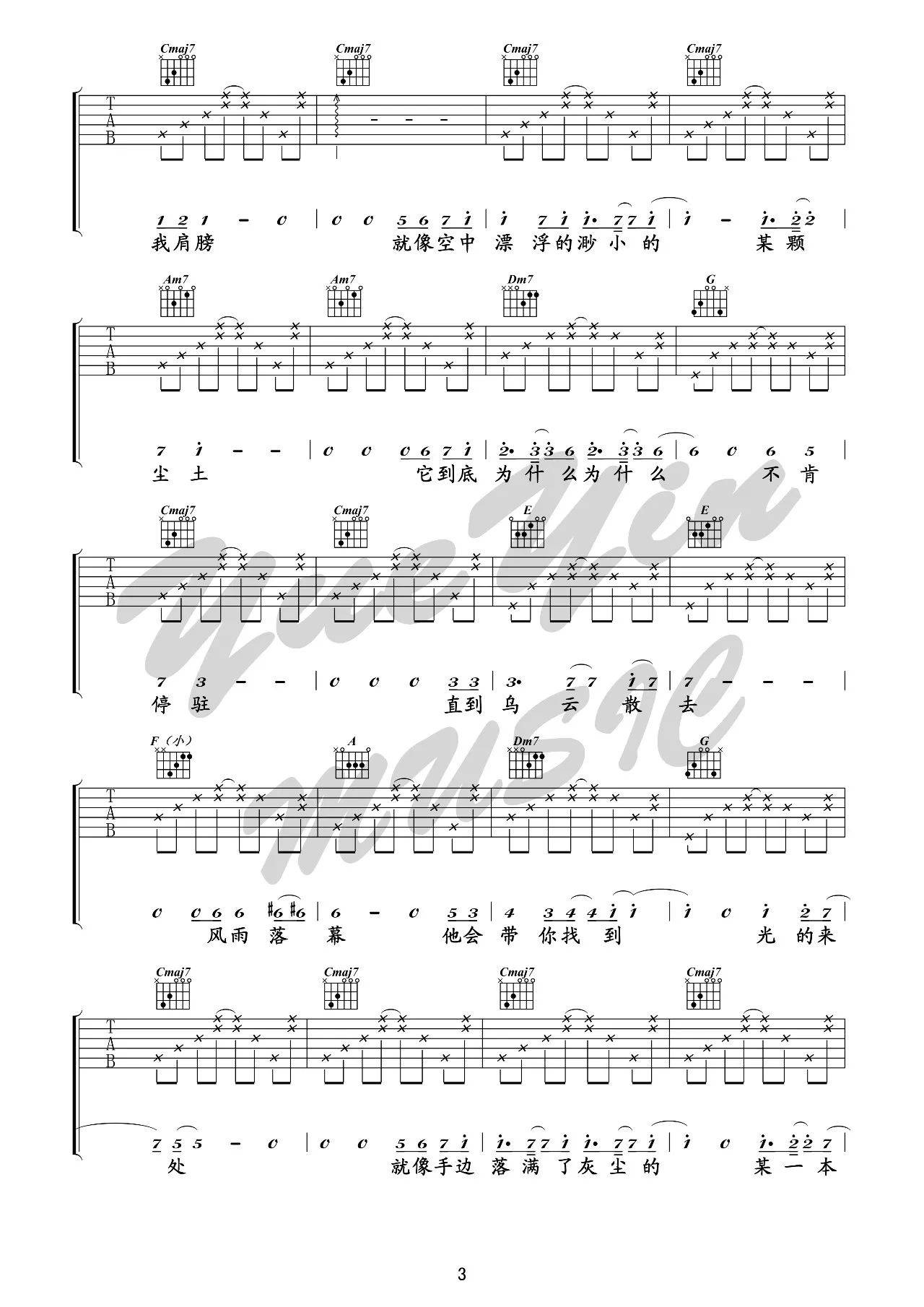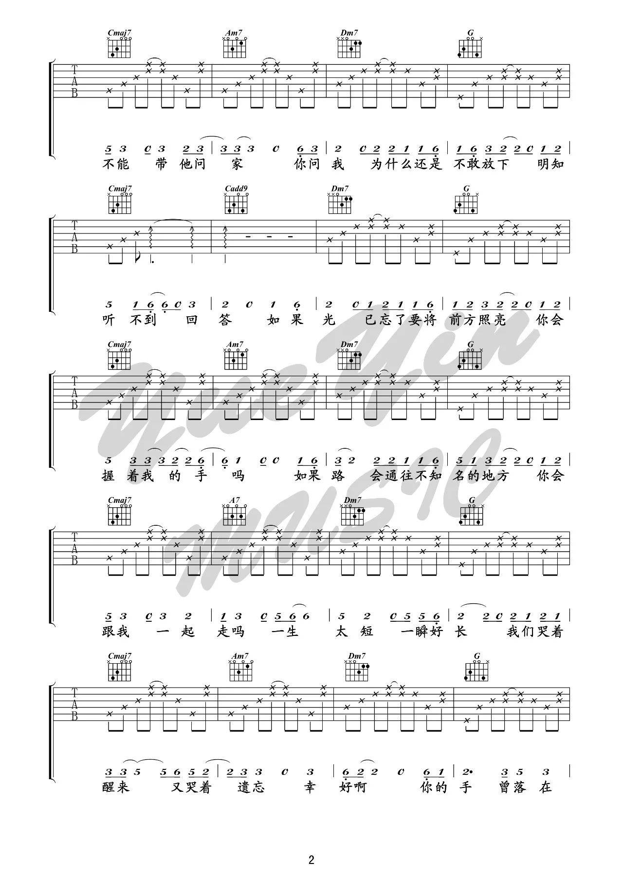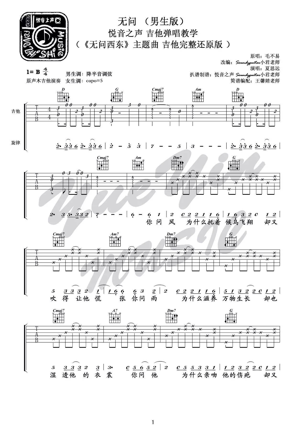 曲谱介绍: 毛不易《无问》吉他弹唱谱,采用B调指法编配,悦音之声编配出品,共有6张高清图谱。