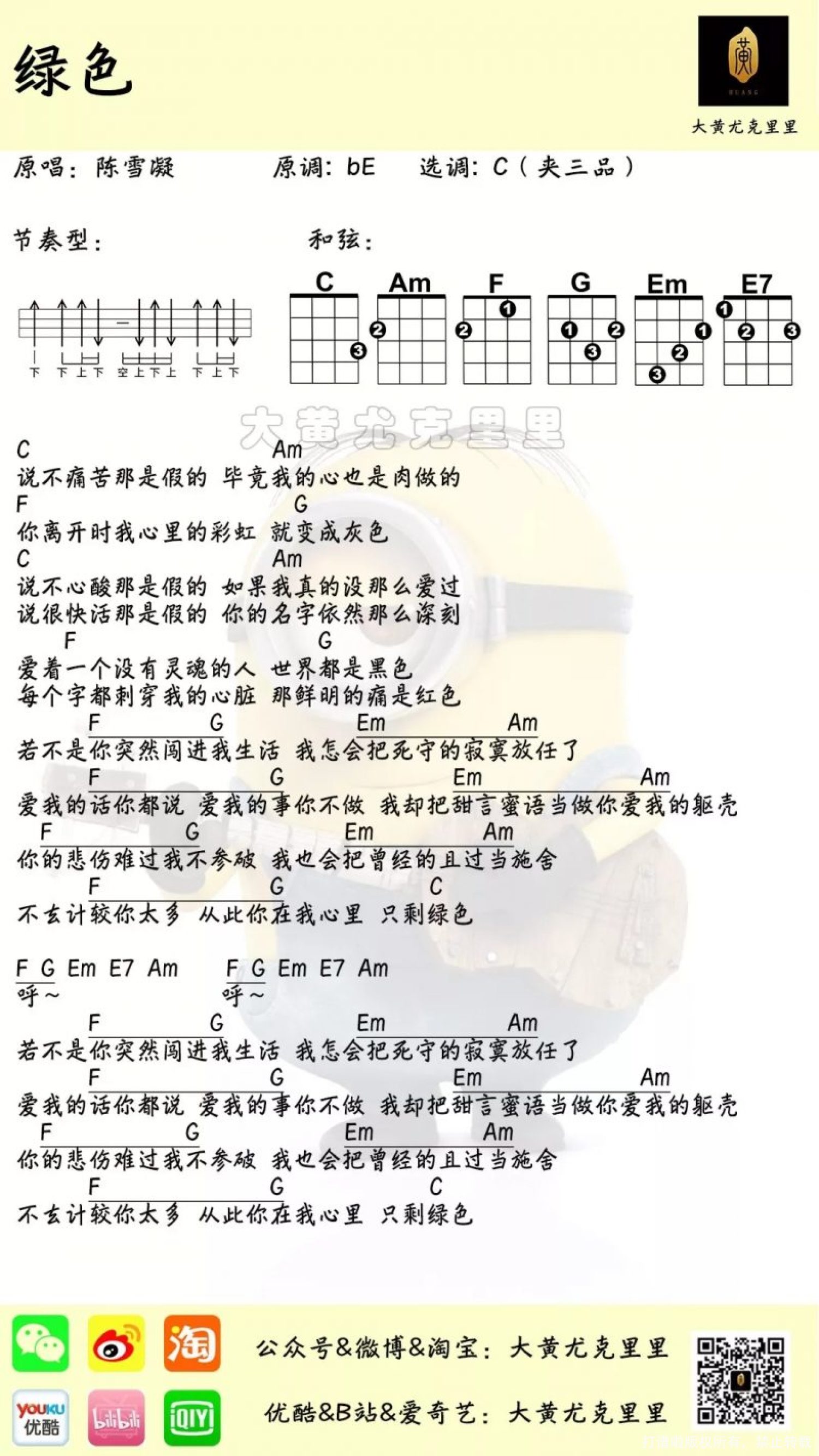 绿色尤克里里谱 - 陈雪凝