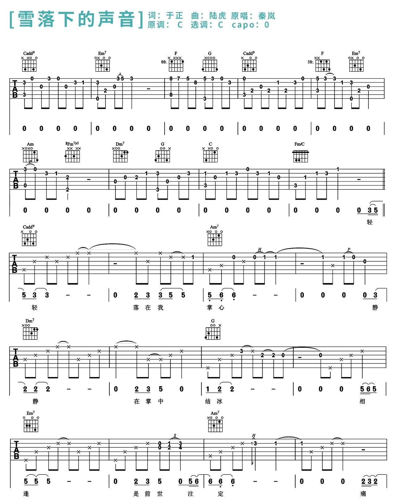 雪落下的声音吉他谱 - 陆虎 - C调吉他弹唱谱