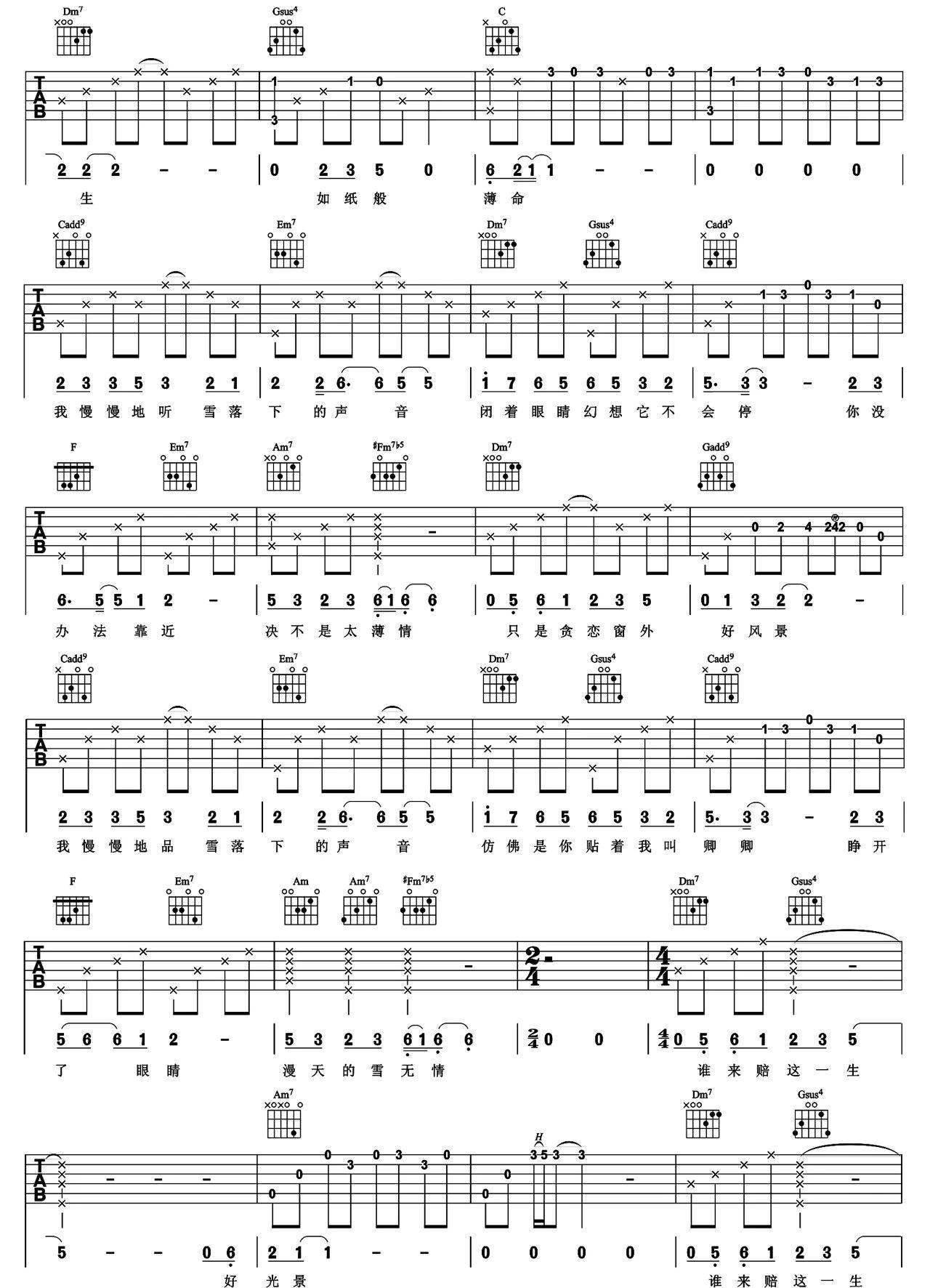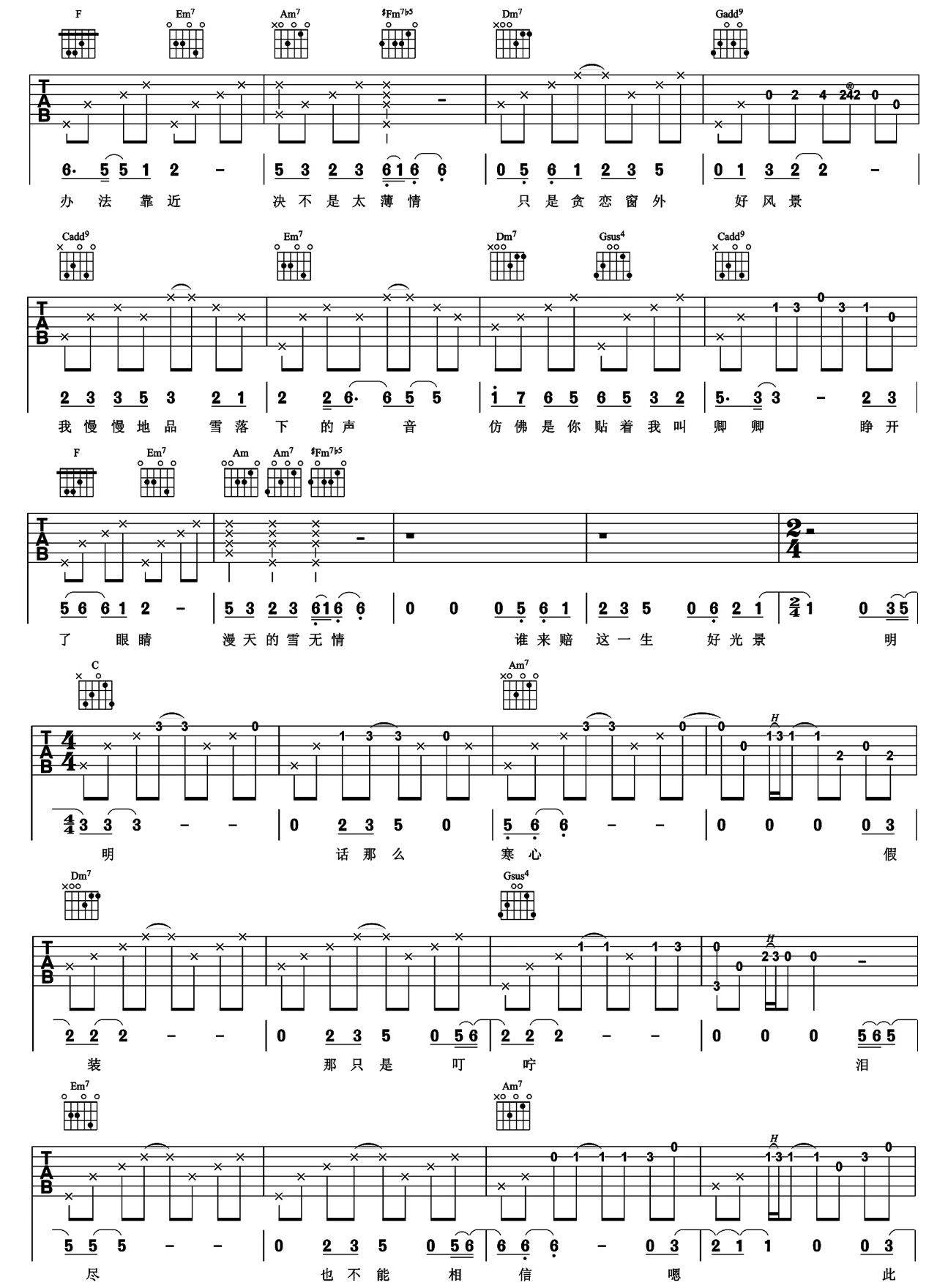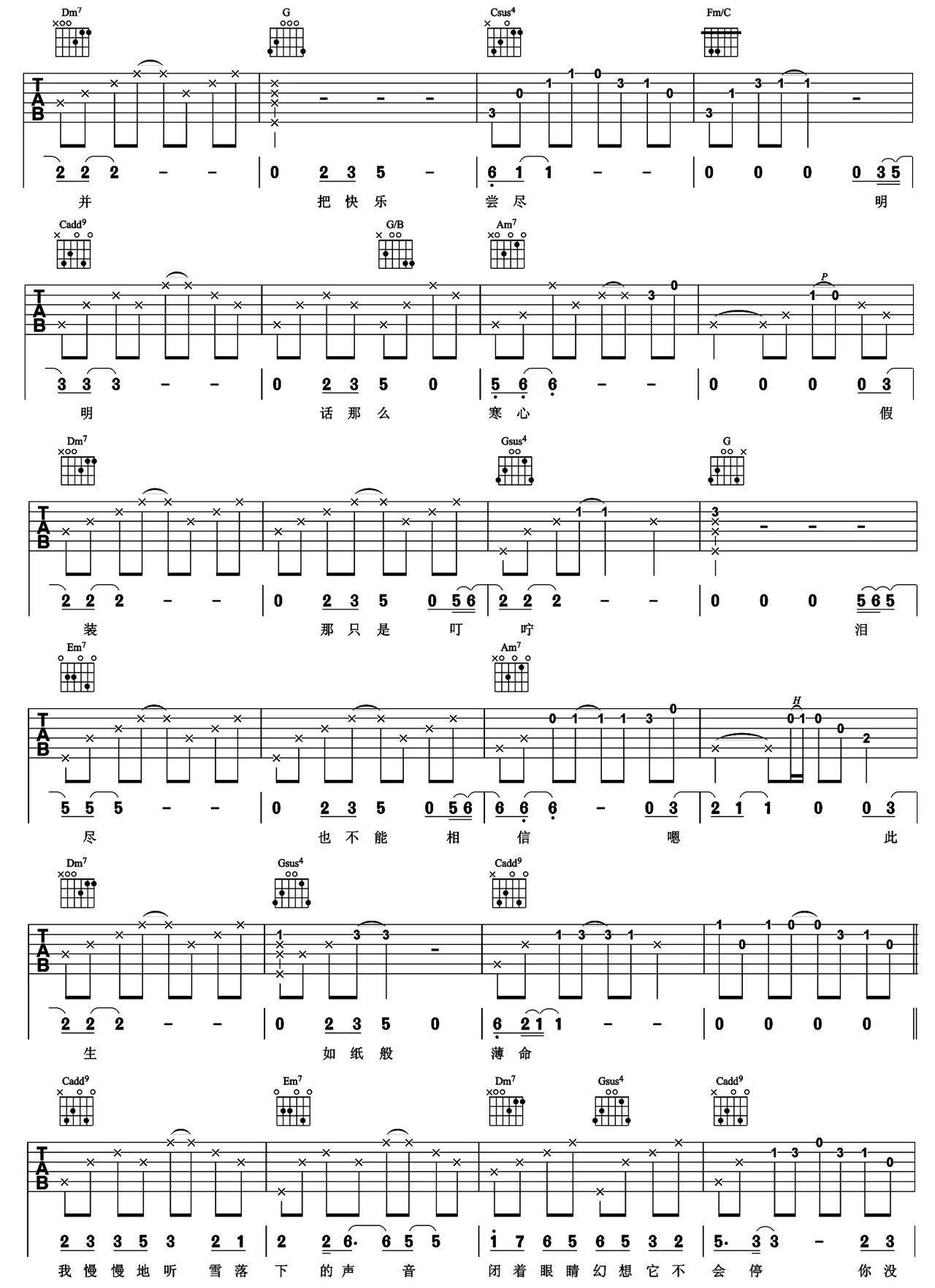 当前位置:琴谱网>吉他弹唱>雪落下的声音