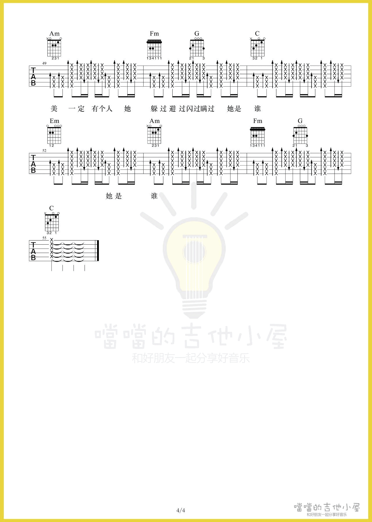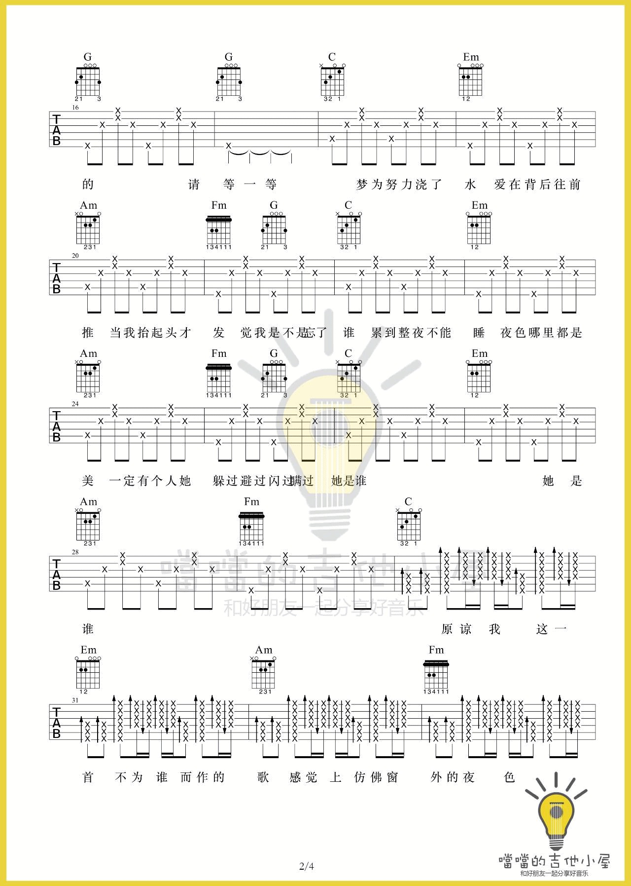 曲谱介绍: 林俊杰《不为谁而作的歌》吉他弹唱谱,采用D调指法编配,噹噹吉他小屋编配出品,共有4张高清图谱。