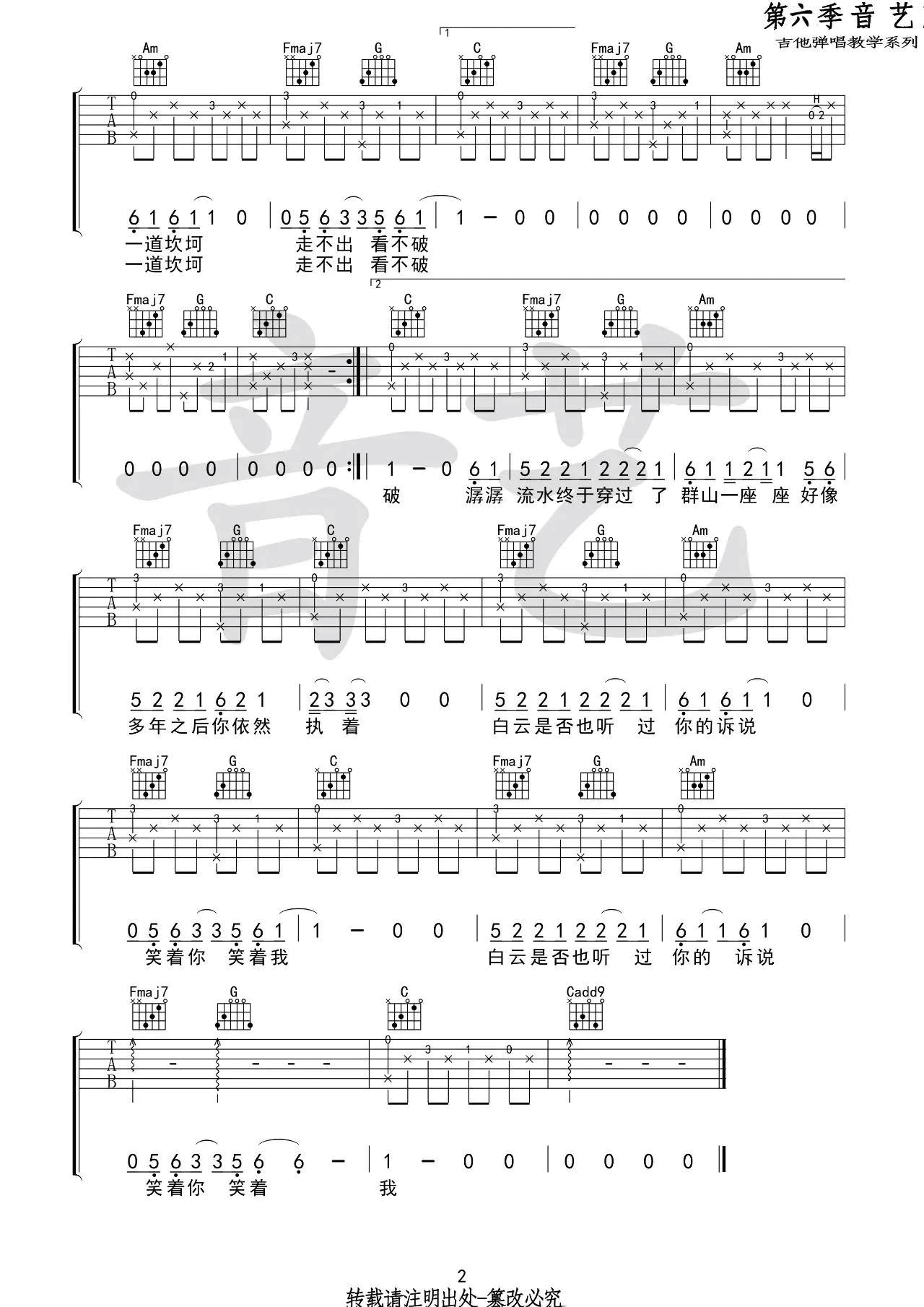 吉他弹唱C调来源:音艺吉他312 浏览2024-01-22 20:32发布图谱共2页